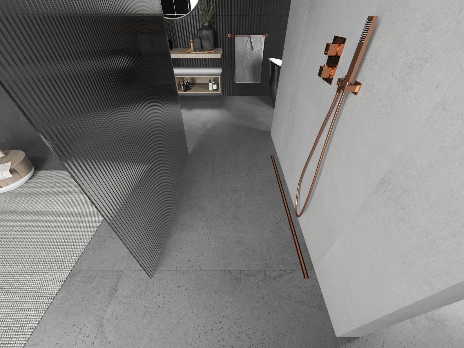 Mexen Kioto freistehende Duschwand 140 x 200 cm, Streifen 8 mm, Roségold - 800-140-002-60-09