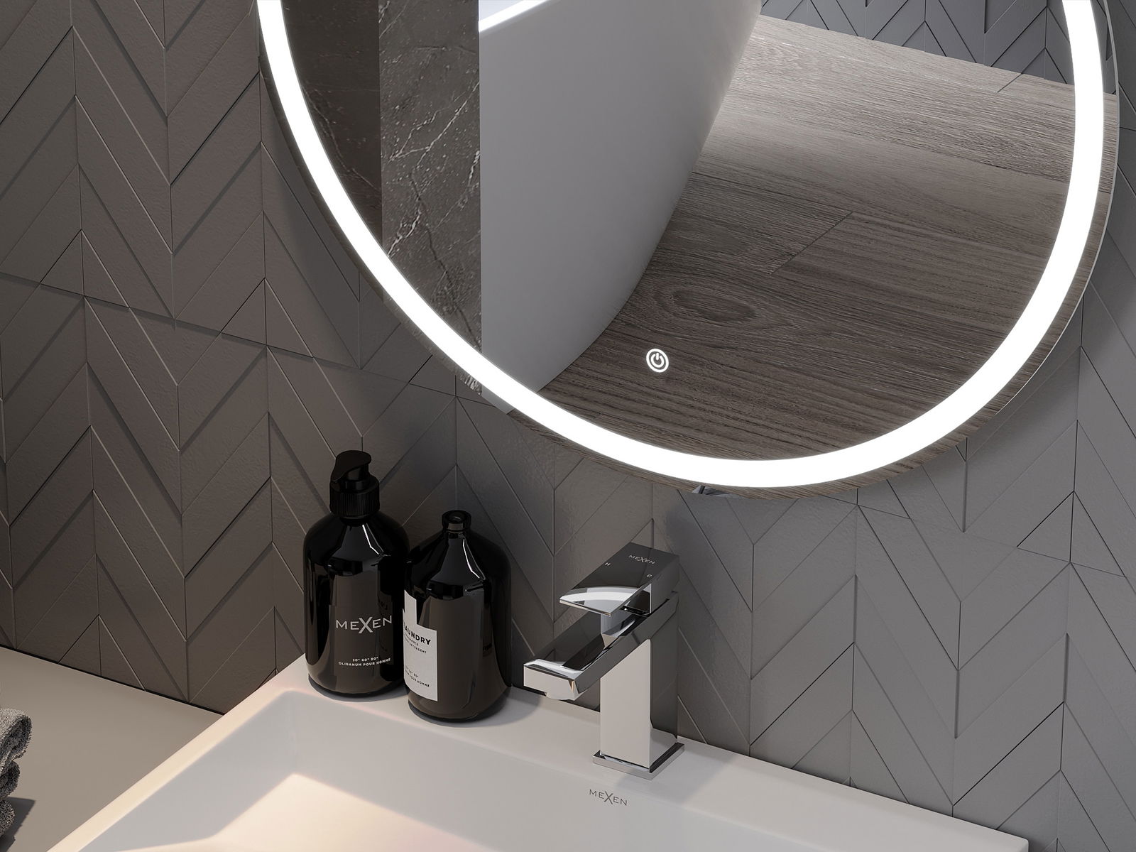 Der Spiegel ist mit kalter LED -Beleuchtung - 6000k ausgestattet. Es bietet eine intensive und klare Beleuchtung, mit der Sie auch die kleinsten Details bemerken können. Unterstützt perfekt tägliche Behandlungen mit Gesichtspflege.