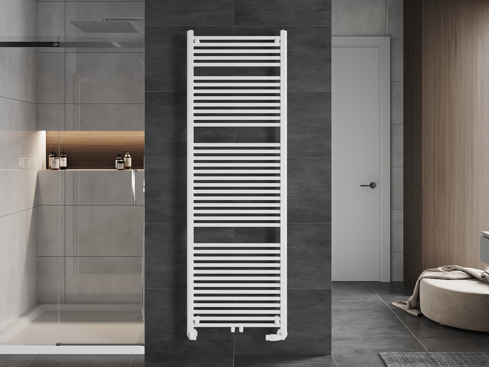 Mexen Mars ist ein moderner Badezimmerheizkörper mit den Maßen 1800 x 600 mm, der eine Heizleistung von 953 W bietet. Dank der Höhe von 1800 mm und der Breite von 600 mm eignet er sich hervorragend für jedes Badezimmer und sorgt für optimale Wärme. Aus Stahl gefertigt, verfügt er über eine langlebige, korrosionsbeständige Lackschicht. Die Montage ist flexibel mit Möglichkeit für unteren oder mittleren Anschluss sowie Einbau eines Heizstabs. Im Set sind Aufhängungen, Montageset und Entlüfter enthalten, was die Installation erleichtert.