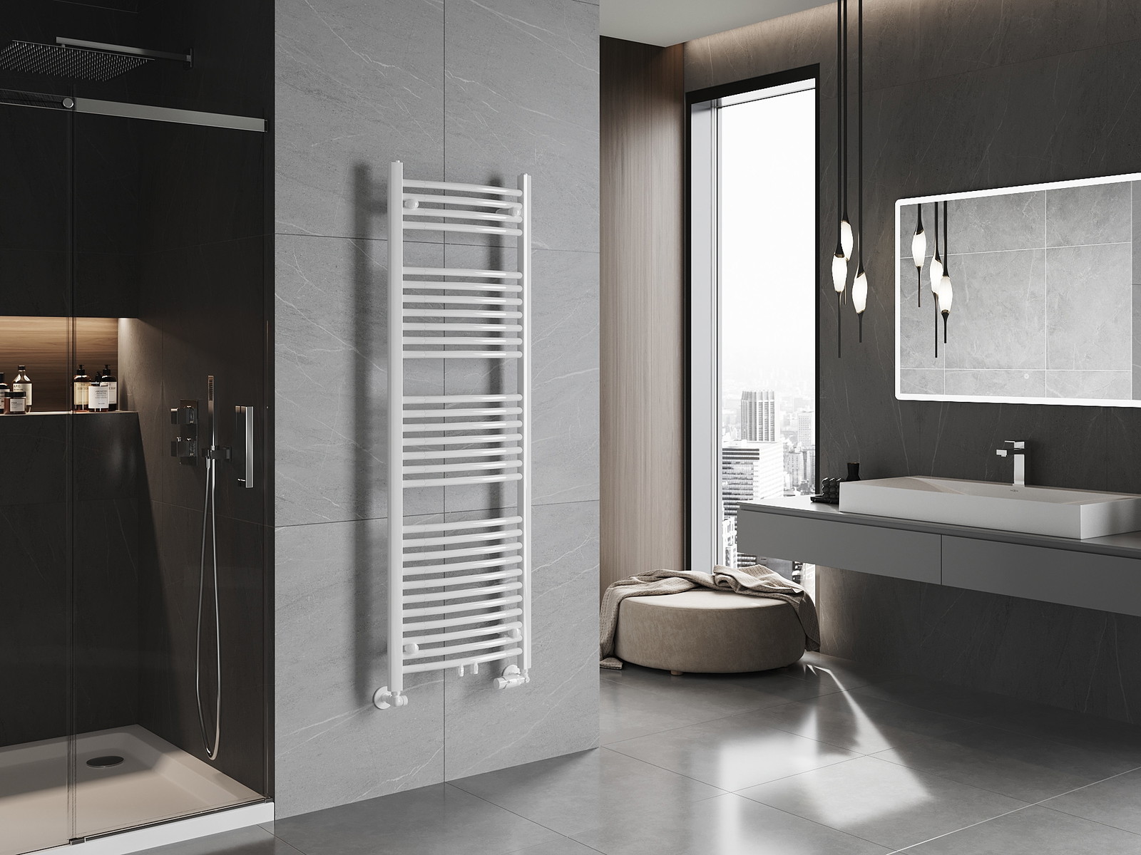 Mexen Ares ist ein eleganter Badezimmerheizkörper mit den Abmessungen 1500 x 500 mm, der eine Heizleistung von 630 W bietet, ideal für jedes Badezimmer. Dank seiner weißen Farbgebung (RAL 9016) fügt er sich in jedes Interieur ein. Hergestellt aus strapazierfähigem Stahl, zeichnet er sich durch hohe Korrosionsbeständigkeit und eine Brandreaktionsklasse von A1 aus. Die Installation ist flexibel dank der Option für unteren oder mittleren Anschlussabstand (45 cm oder 5 cm). Im Lieferumfang ist alles enthalten, was für die Montage benötigt wird, einschließlich Aufhängungen und Entlüftungsventil.