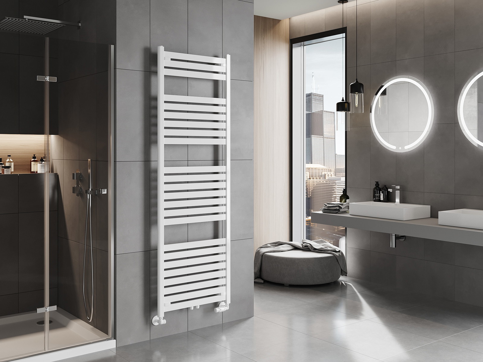 Mexen Uran ist ein eleganter Badezimmerheizkörper mit den Abmessungen 1800 x 600 mm, der eine außergewöhnliche Heizleistung von 934 W bietet. Durch die Verwendung von Stahl und die weiße Ausführung RAL 9016 ist er nicht nur ästhetisch, sondern auch äußerst langlebig und korrosionsbeständig. Die hochwertige Lackbeschichtung und die Möglichkeit, einen Heizstab zu montieren, machen ihn zu einer besonders funktionalen Lösung. Der Heizkörper ist feuerbeständig (Klasse A1) und kann bei Temperaturen bis zu 95 °C sowie unter einem maximalen Druck von 0,4 Mpa arbeiten. Im Set enthalten sind Halterungen, Montageset, Verschlussstopfen und Entlüftungsventil.