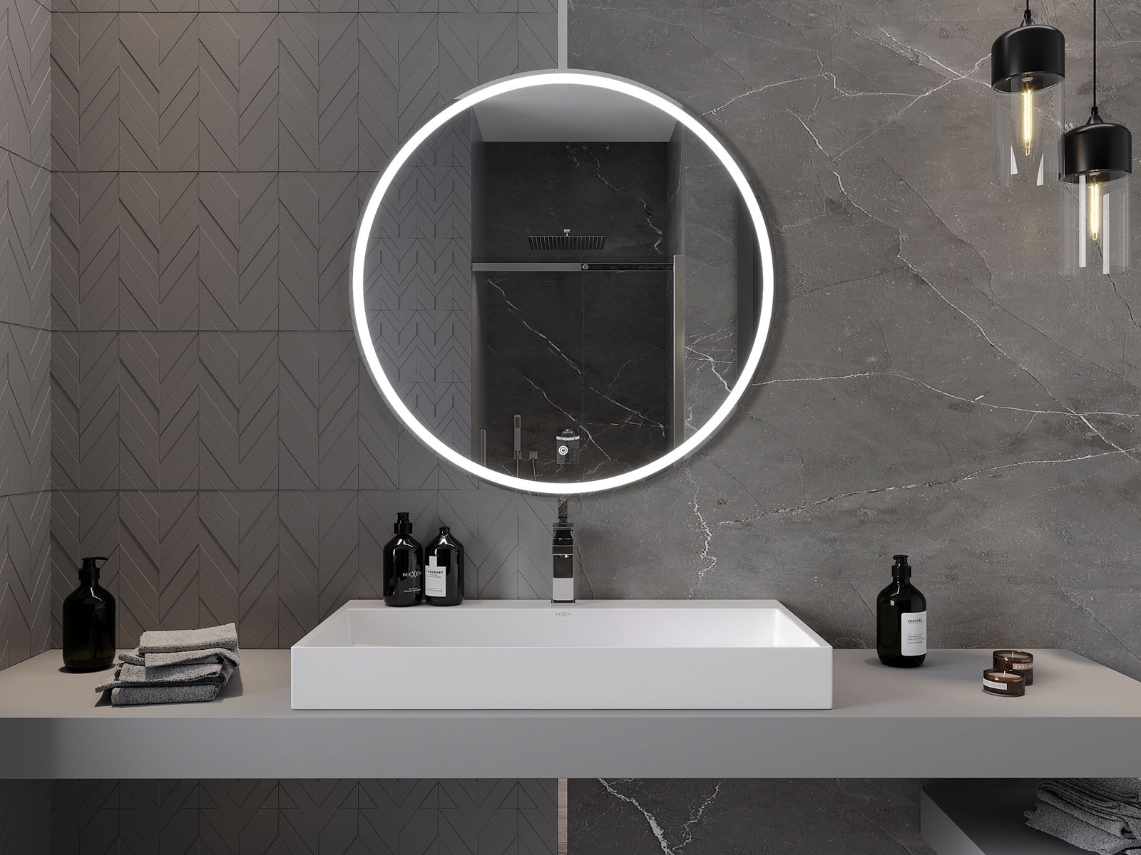 Der Spiegel ist mit kalter LED -Beleuchtung - 6000k ausgestattet. Es bietet eine intensive und klare Beleuchtung, mit der Sie auch die kleinsten Details bemerken können. Unterstützt perfekt tägliche Behandlungen mit Gesichtspflege.