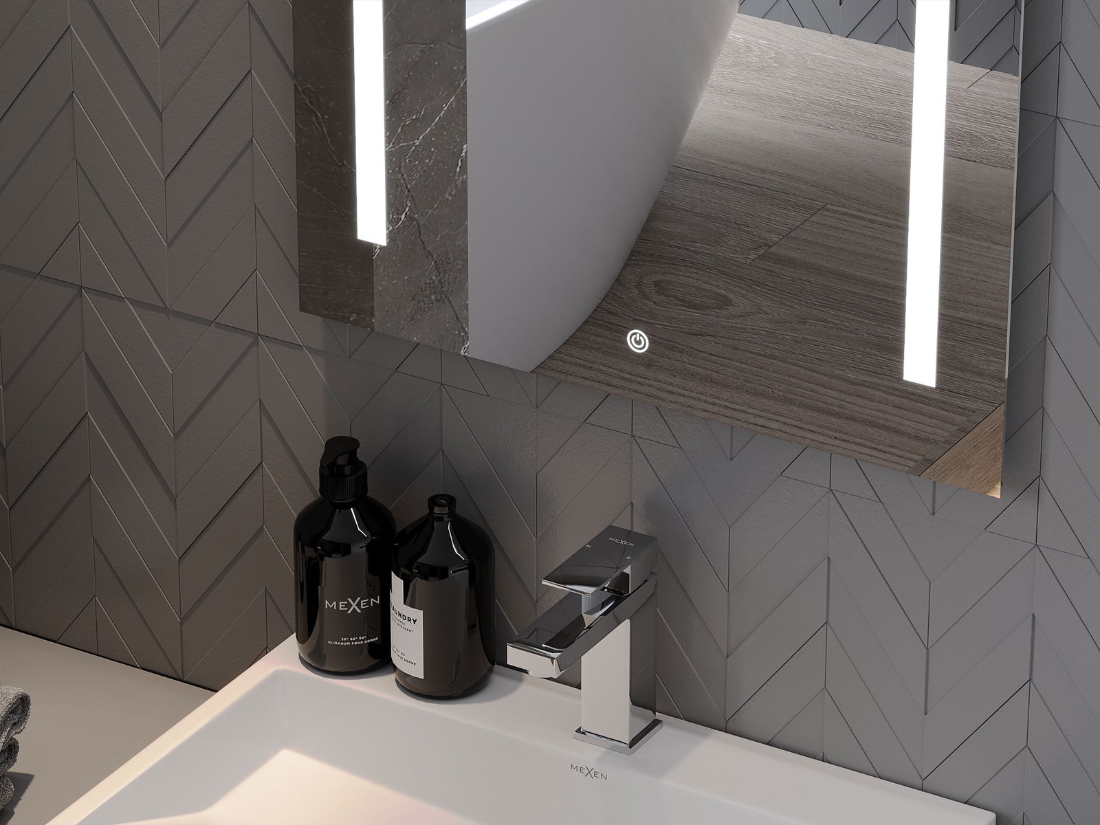 Das Produkt wurde mit einer Heizmatte ausgestattet, wodurch der Spiegel auch nach einem langen und heißen Bad nie verderbt wird. Die Matte beginnt den Beleuchtungsschalter, um die Bequemlichkeit und die Benutzerfreundlichkeit zu gewährleisten.
