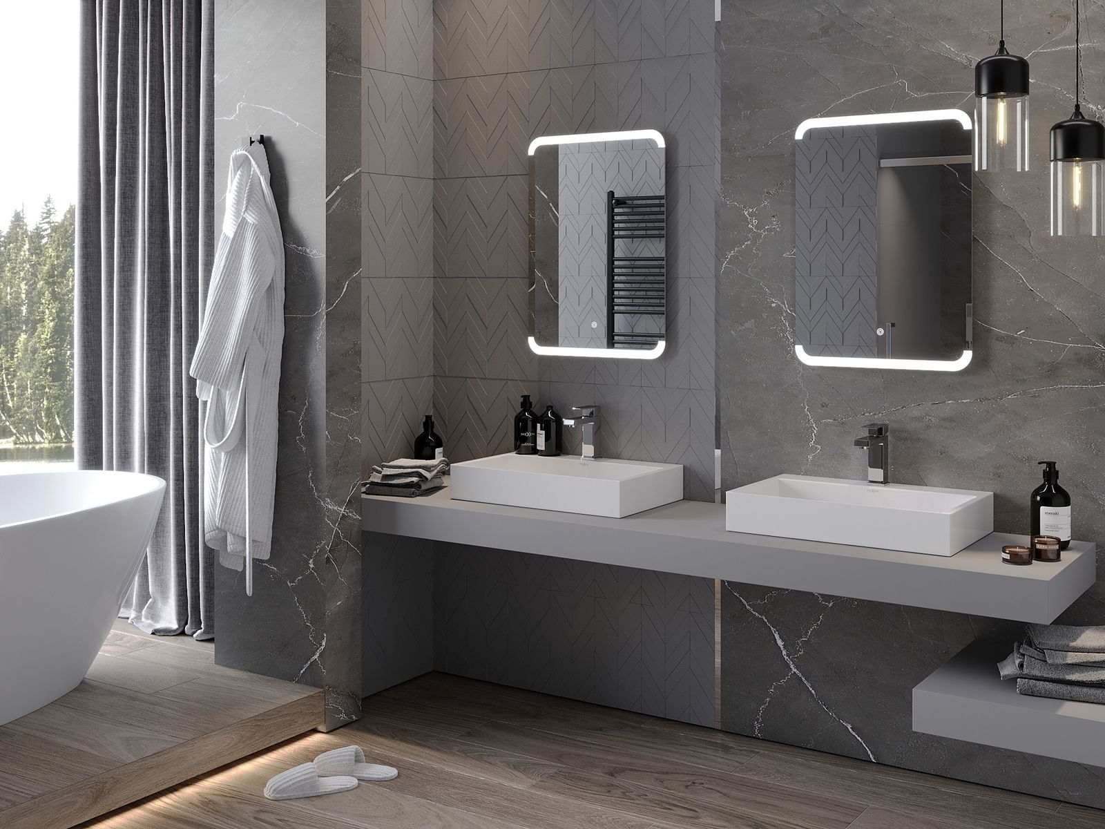 Das Produkt wurde mit einer Heizmatte ausgestattet, wodurch der Spiegel auch nach einem langen und heißen Bad nie verderbt wird. Die Matte beginnt den Beleuchtungsschalter, um die Bequemlichkeit und die Benutzerfreundlichkeit zu gewährleisten.