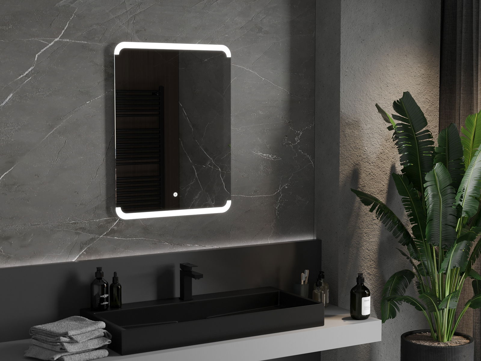 Die Spiegelbeleuchtung kann einfach und bequem gestartet werden, indem der Schalter auf der Spiegeloberfläche berührt wird. Dies ermöglicht eine schnelle Beleuchtung, ohne nach dem weiteren herkömmlichen Lichtschalter greifen zu müssen.