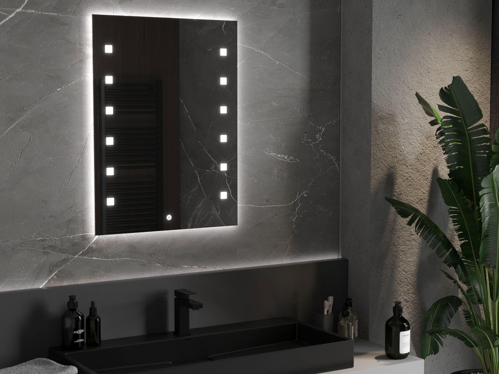 Die Spiegelbeleuchtung kann einfach und bequem gestartet werden, indem der Schalter auf der Spiegeloberfläche berührt wird. Dies ermöglicht eine schnelle Beleuchtung, ohne nach dem weiteren herkömmlichen Lichtschalter greifen zu müssen.