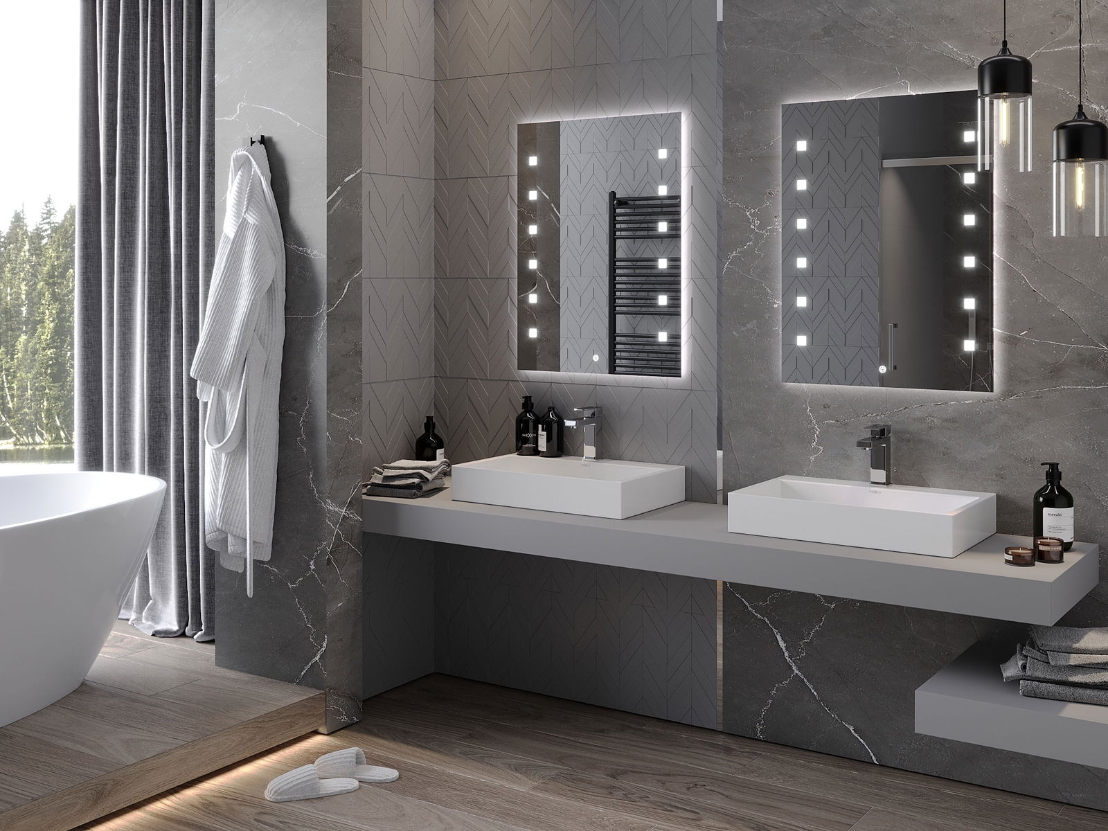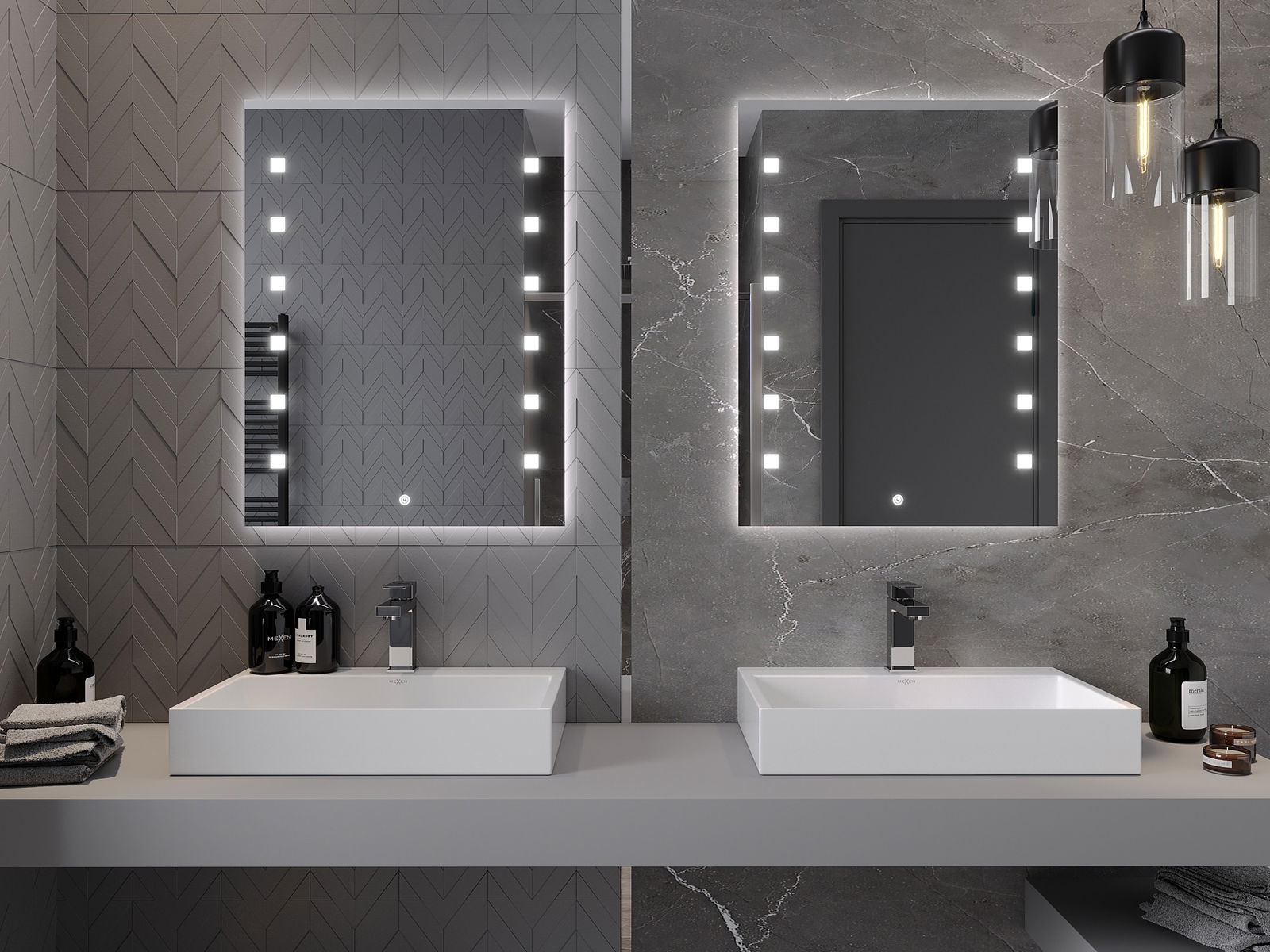 Das Produkt wurde mit einer Heizmatte ausgestattet, wodurch der Spiegel auch nach einem langen und heißen Bad nie verderbt wird. Die Matte beginnt den Beleuchtungsschalter, um die Bequemlichkeit und die Benutzerfreundlichkeit zu gewährleisten.