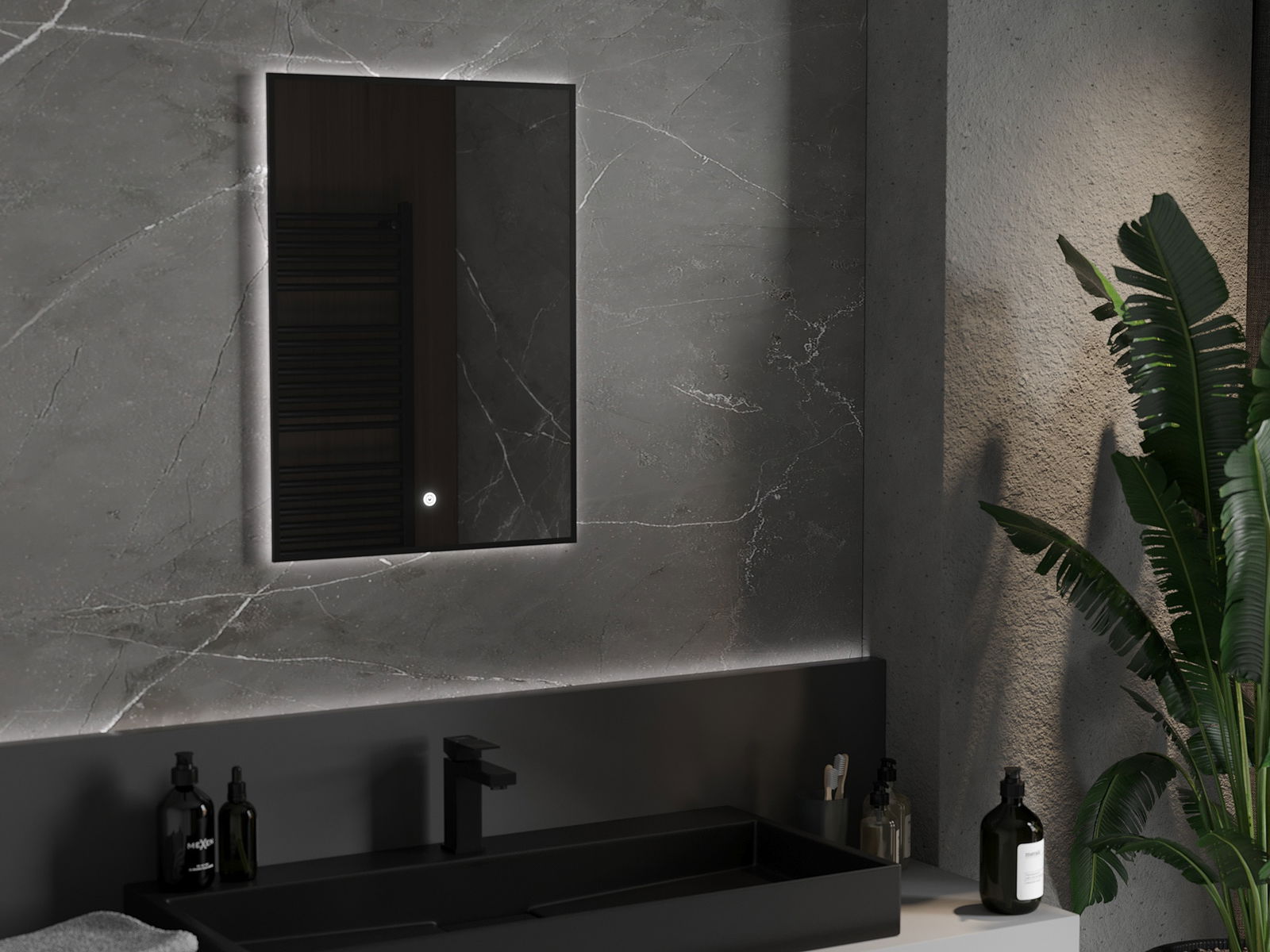 Die Spiegelbeleuchtung kann einfach und bequem gestartet werden, indem der Schalter auf der Spiegeloberfläche berührt wird. Dies ermöglicht eine schnelle Beleuchtung, ohne nach dem weiteren herkömmlichen Lichtschalter greifen zu müssen.