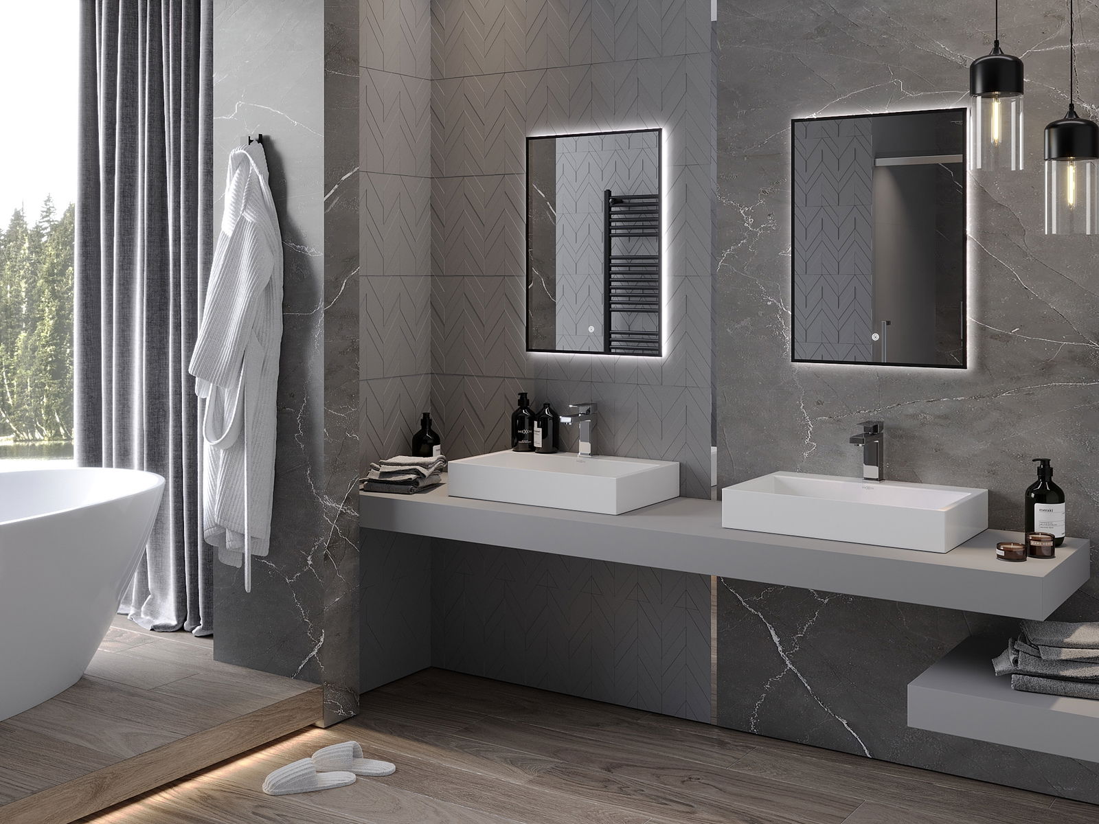 Das Produkt wurde mit einer Heizmatte ausgestattet, wodurch der Spiegel auch nach einem langen und heißen Bad nie verderbt wird. Die Matte beginnt den Beleuchtungsschalter, um die Bequemlichkeit und die Benutzerfreundlichkeit zu gewährleisten.