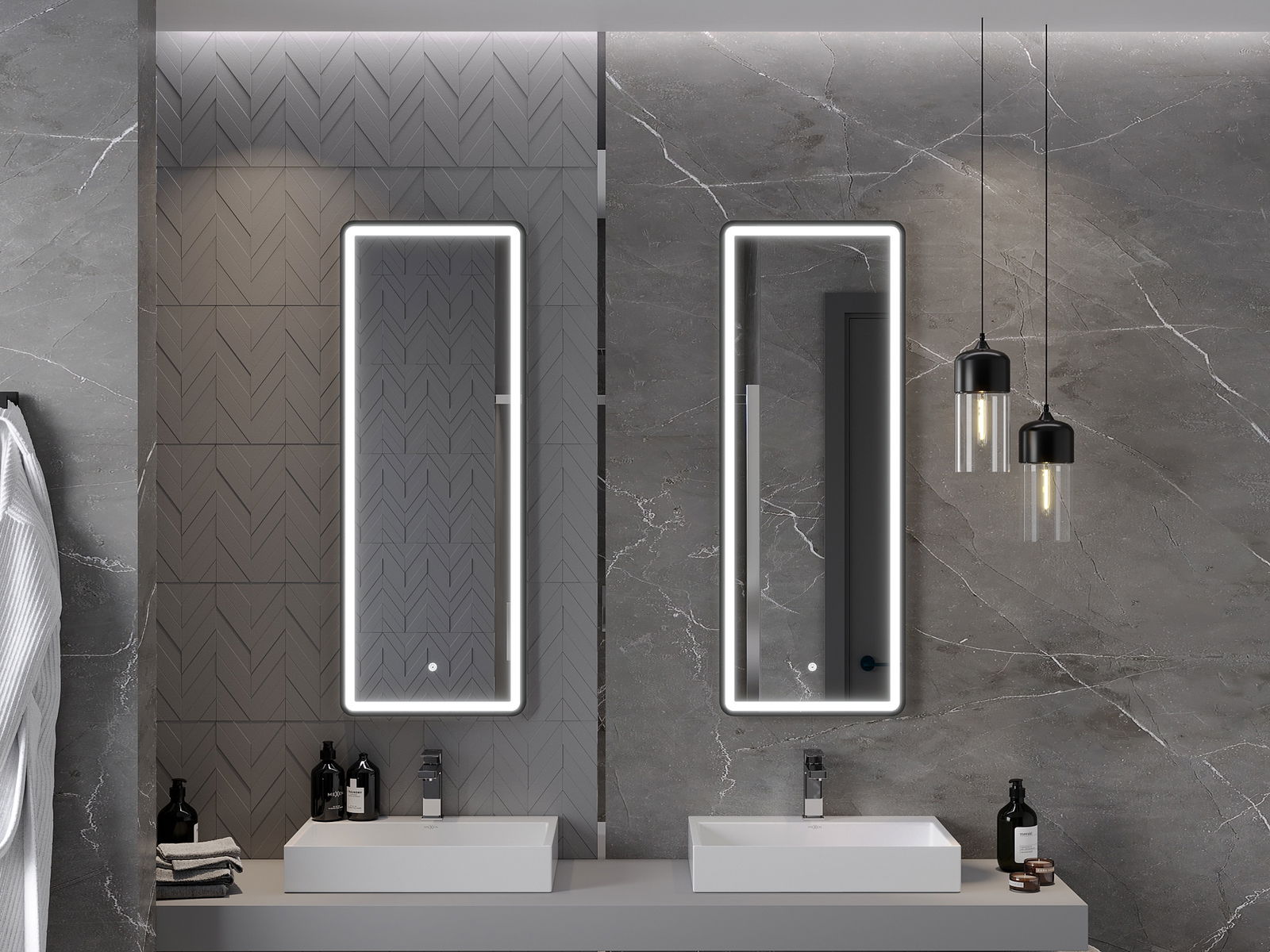 Das Produkt wurde mit einer Heizmatte ausgestattet, wodurch der Spiegel auch nach einem langen und heißen Bad nie verderbt wird. Die Matte beginnt den Beleuchtungsschalter, um die Bequemlichkeit und die Benutzerfreundlichkeit zu gewährleisten.