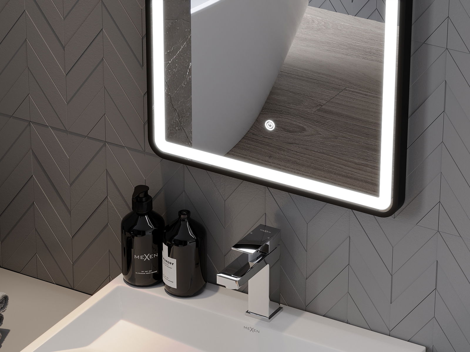 Die Spiegelbeleuchtung kann einfach und bequem gestartet werden, indem der Schalter auf der Spiegeloberfläche berührt wird. Dies ermöglicht eine schnelle Beleuchtung, ohne nach dem weiteren herkömmlichen Lichtschalter greifen zu müssen.