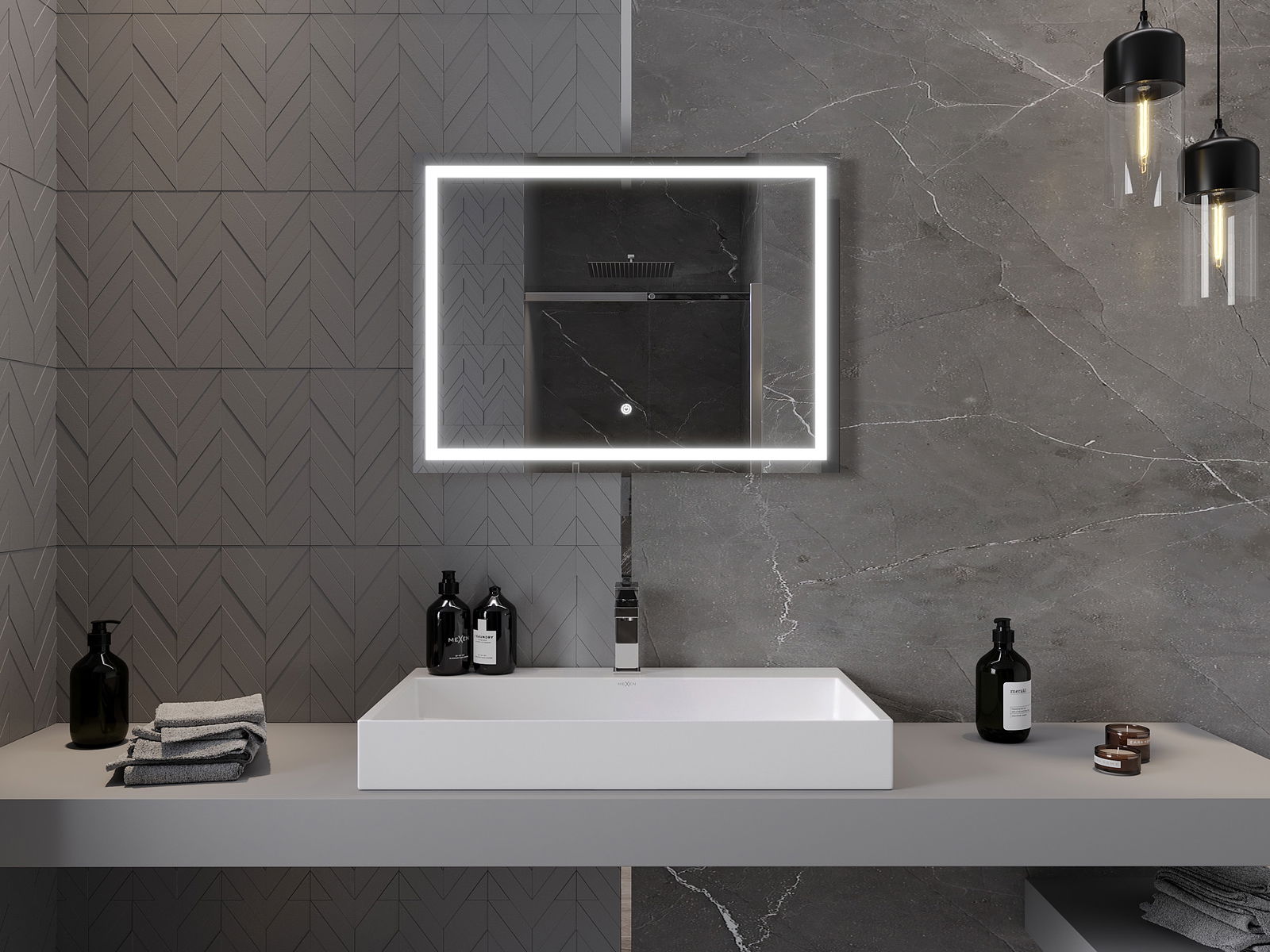 Die Spiegelbeleuchtung kann einfach und bequem gestartet werden, indem der Schalter auf der Spiegeloberfläche berührt wird. Dies ermöglicht eine schnelle Beleuchtung, ohne nach dem weiteren herkömmlichen Lichtschalter greifen zu müssen.