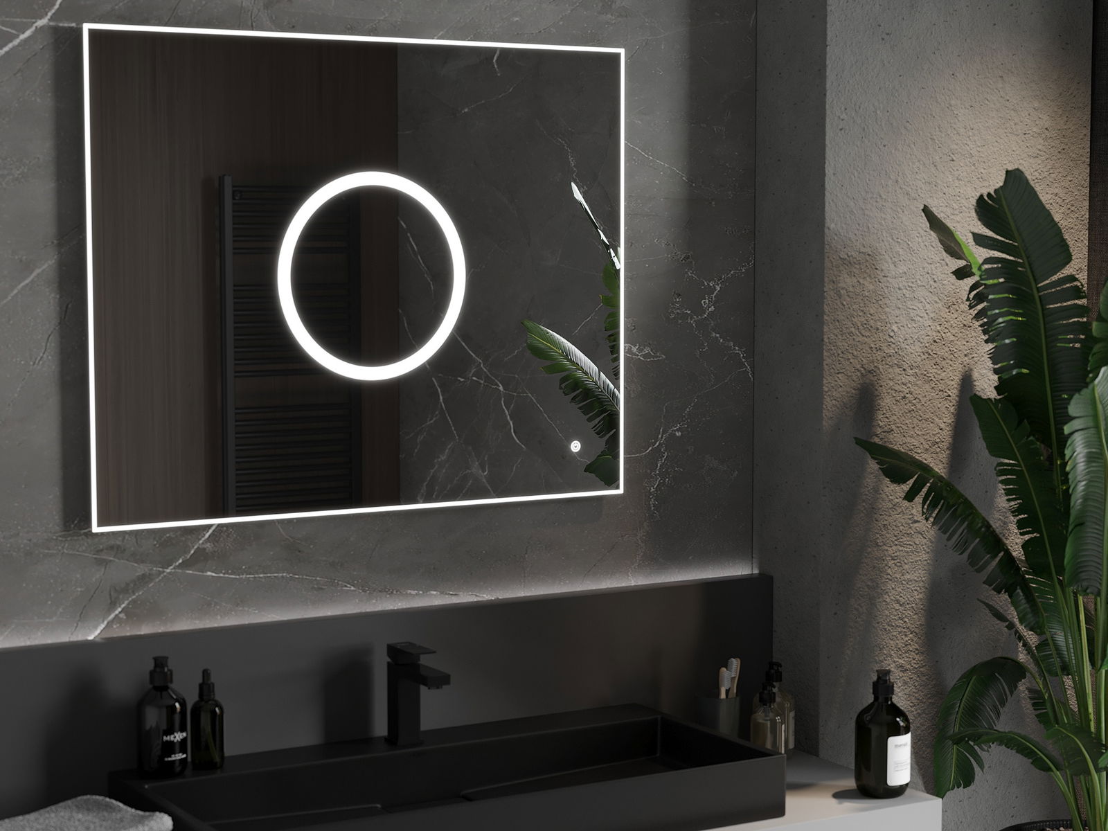 Der Spiegel ist mit kalter LED -Beleuchtung - 6000k ausgestattet. Es bietet eine intensive und klare Beleuchtung, mit der Sie auch die kleinsten Details bemerken können. Unterstützt perfekt tägliche Behandlungen mit Gesichtspflege.