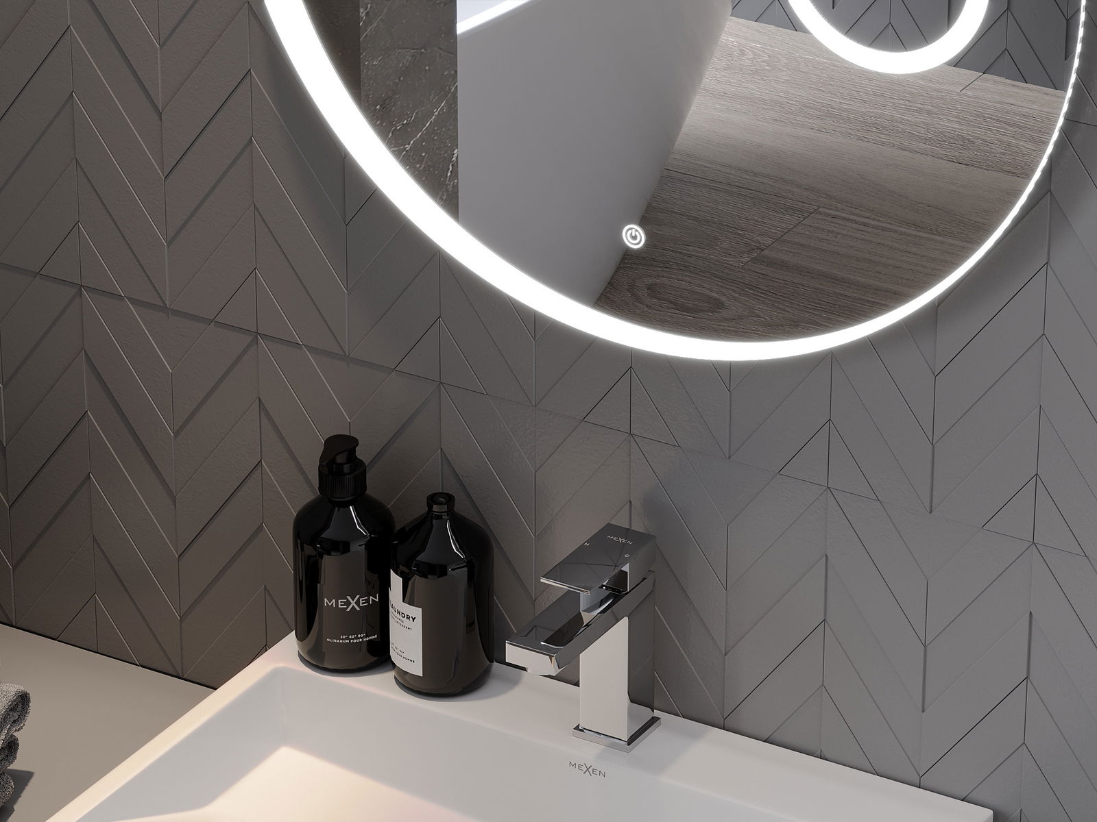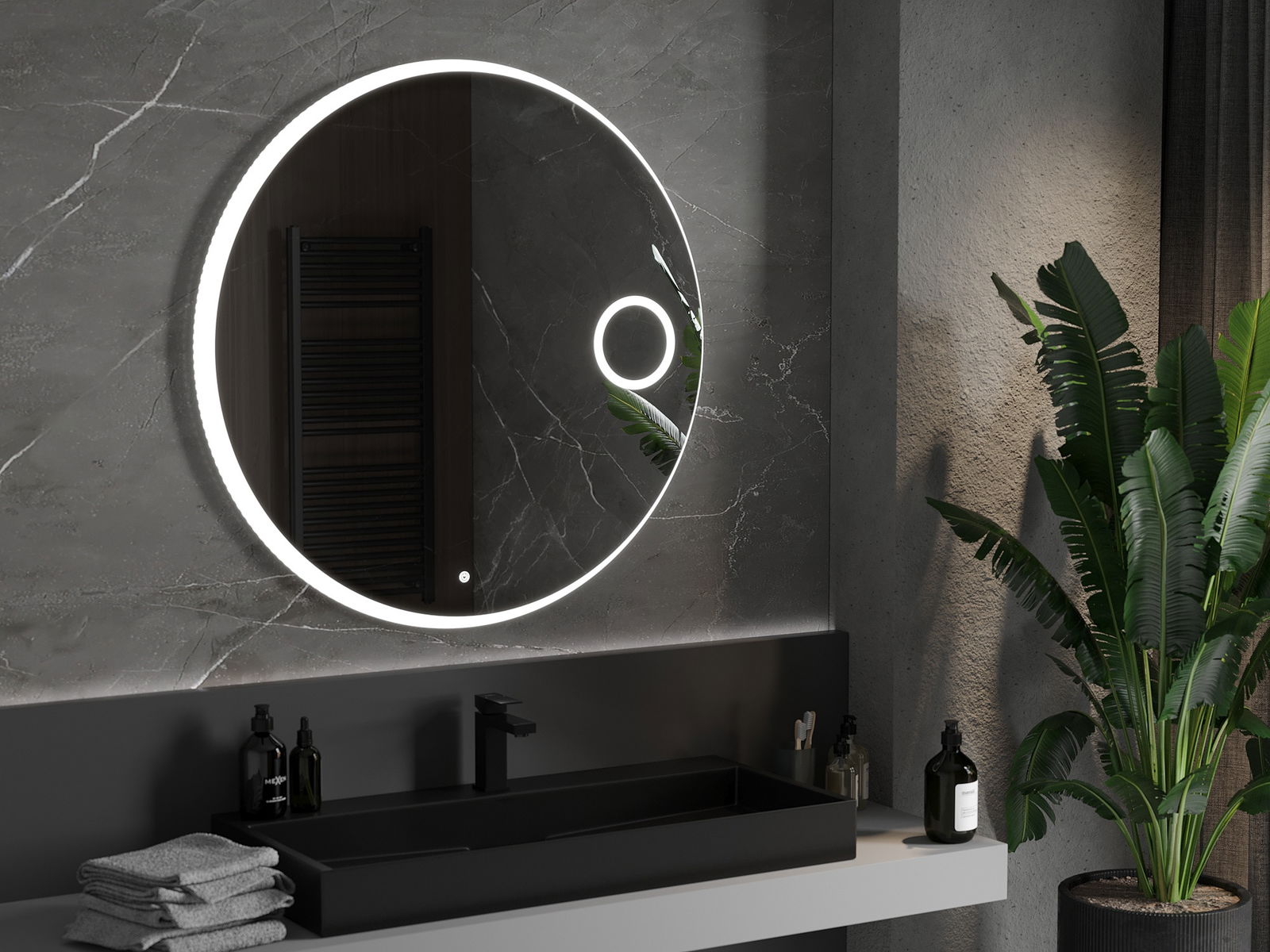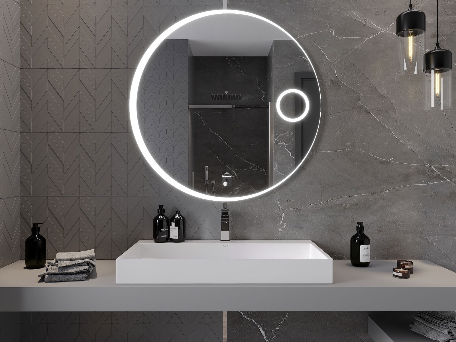 Der Spiegel ist mit kalter LED -Beleuchtung - 6000k ausgestattet. Es bietet eine intensive und klare Beleuchtung, mit der Sie auch die kleinsten Details bemerken können. Unterstützt perfekt tägliche Behandlungen mit Gesichtspflege.