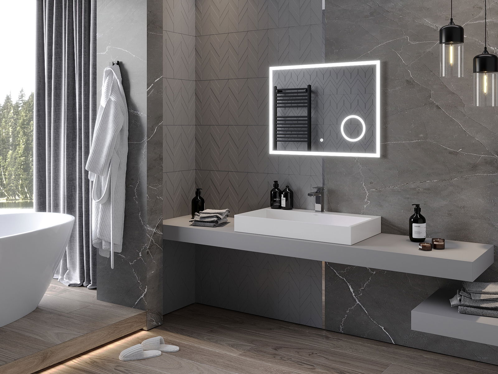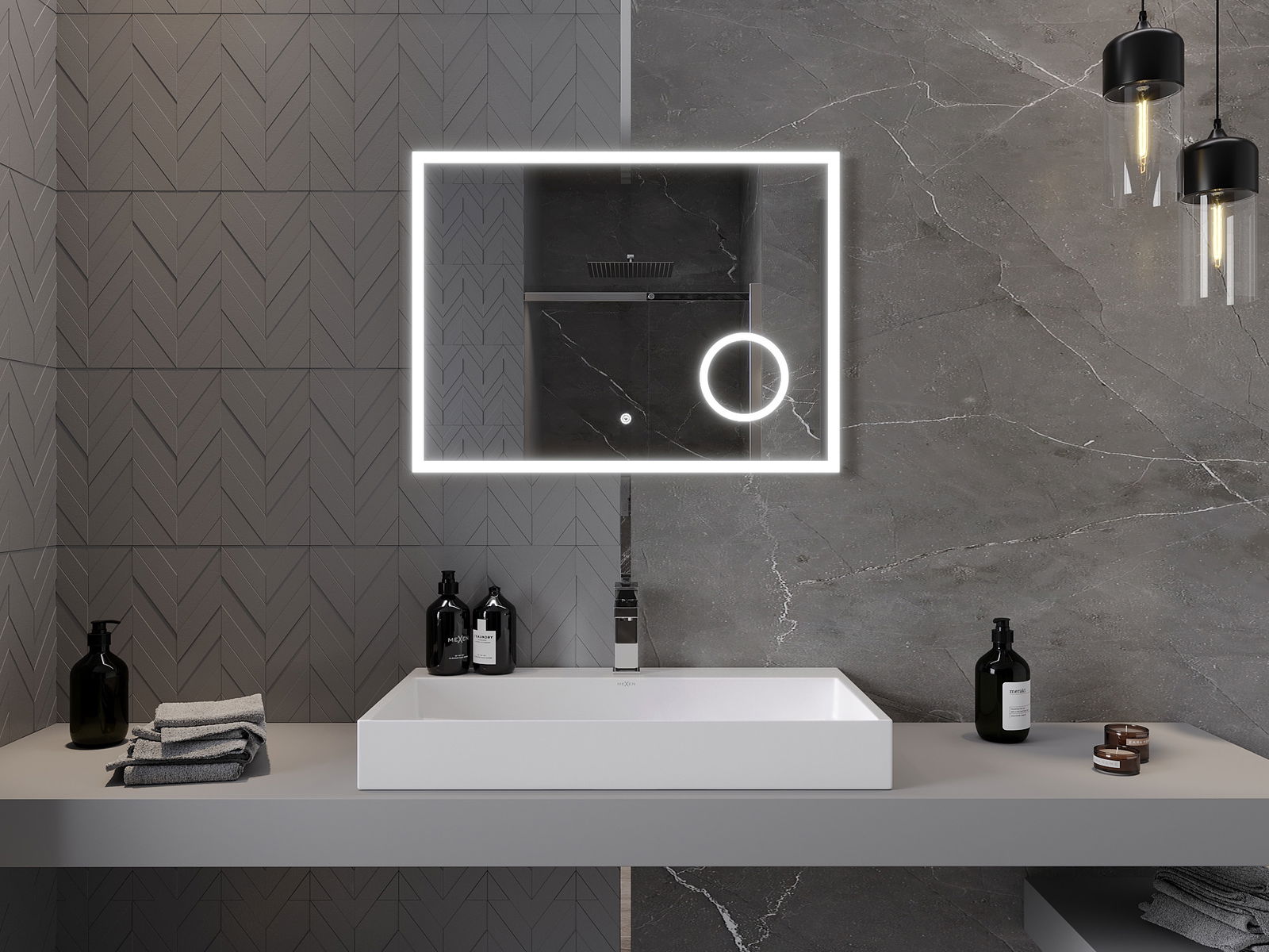 Der Spiegel ist mit kalter LED -Beleuchtung - 6000k ausgestattet. Es bietet eine intensive und klare Beleuchtung, mit der Sie auch die kleinsten Details bemerken können. Unterstützt perfekt tägliche Behandlungen mit Gesichtspflege.