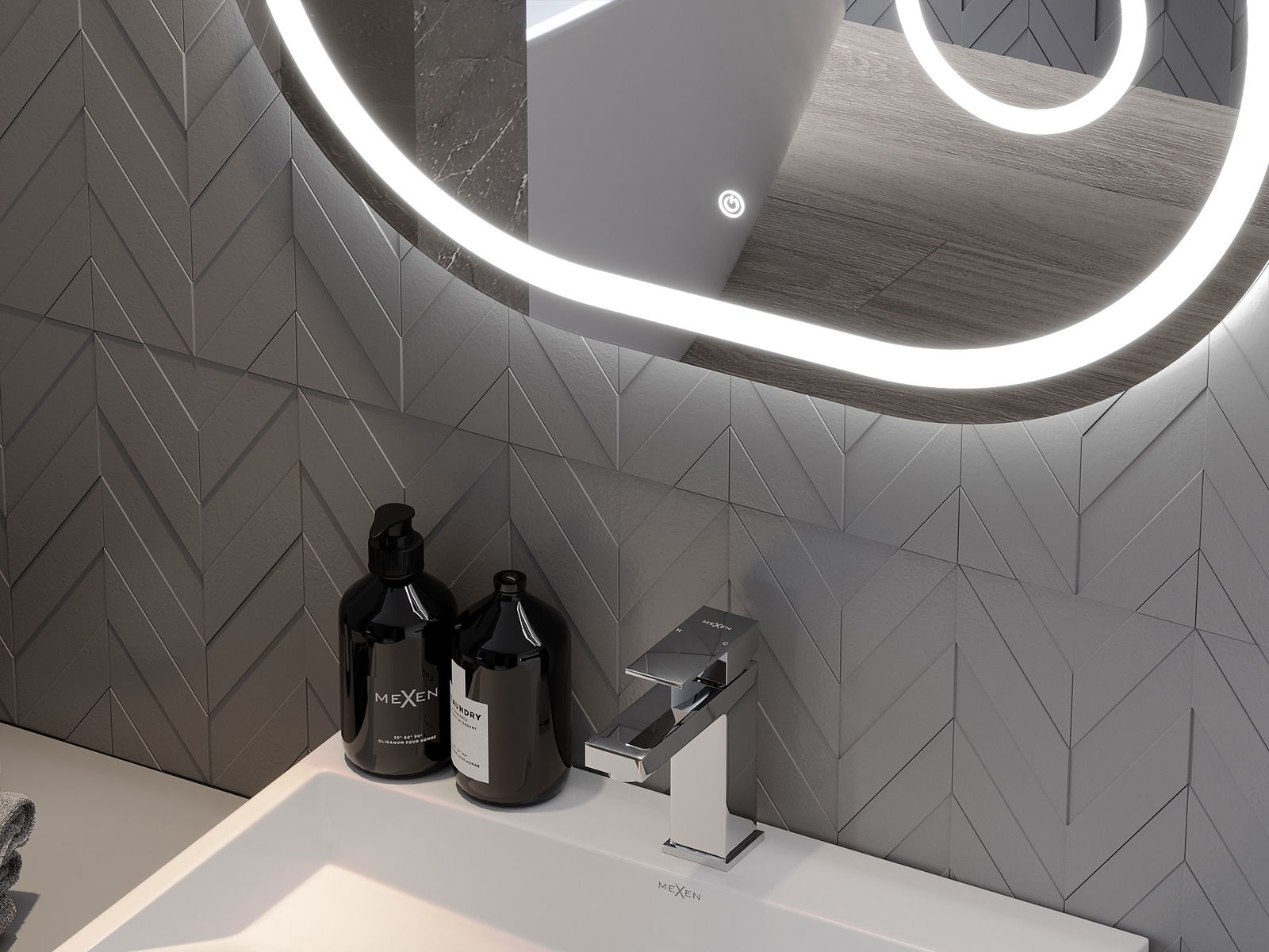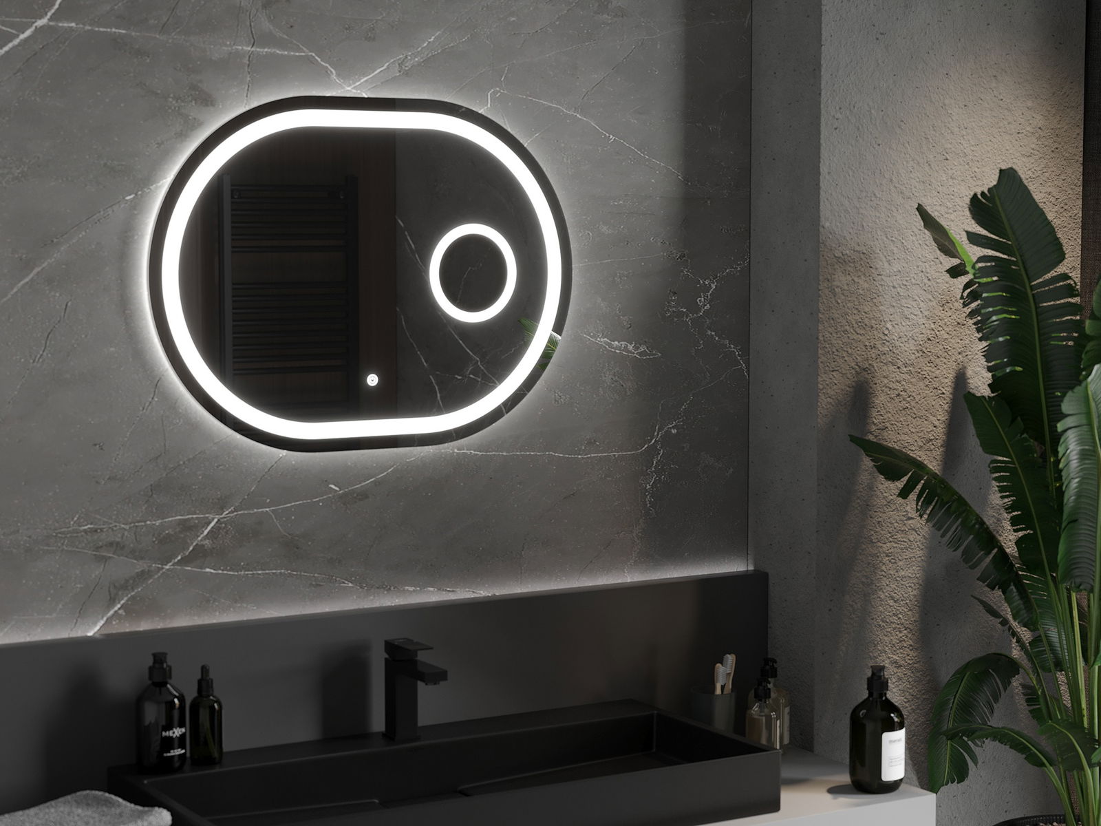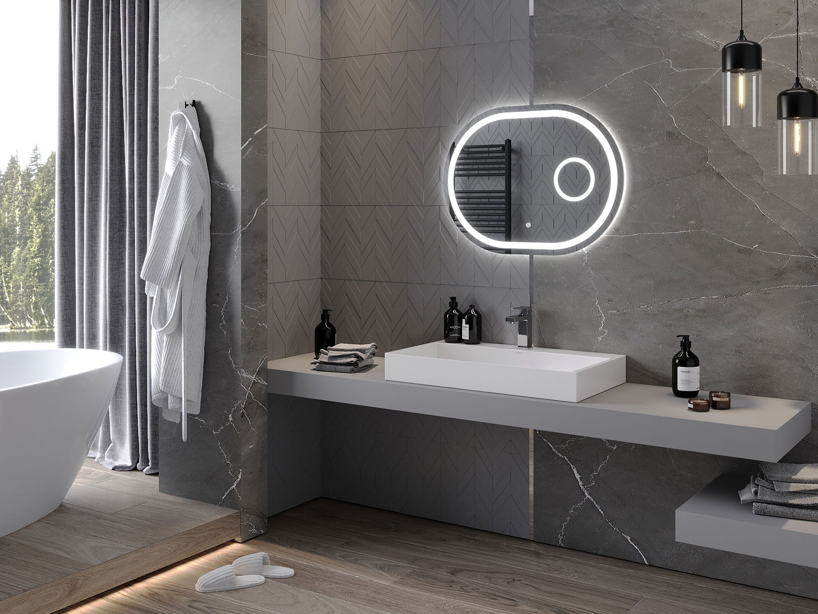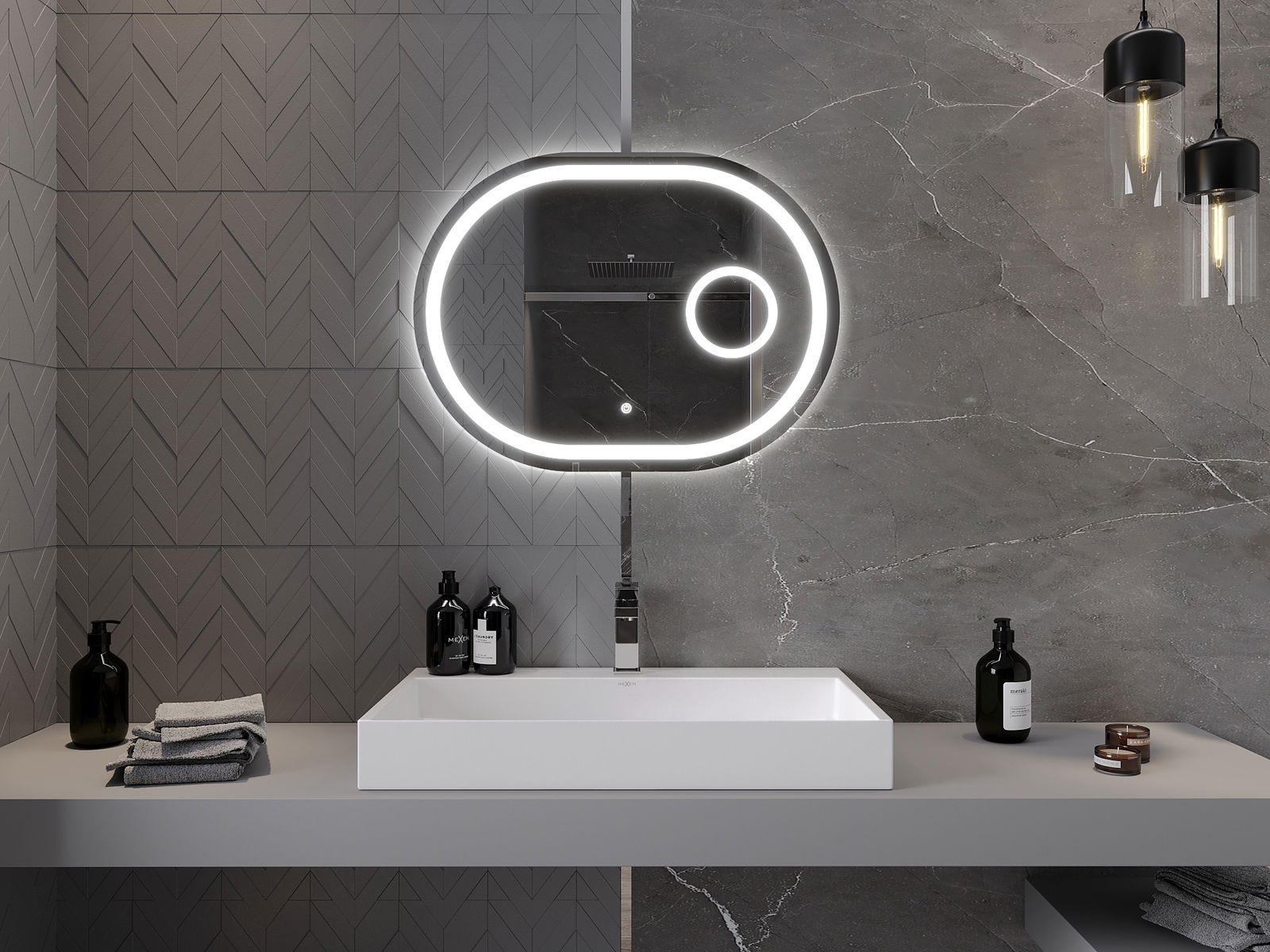 Der Spiegel ist mit kalter LED -Beleuchtung - 6000k ausgestattet. Es bietet eine intensive und klare Beleuchtung, mit der Sie auch die kleinsten Details bemerken können. Unterstützt perfekt tägliche Behandlungen mit Gesichtspflege.