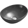 Aufsatzwaschbecken mit den Maßen 40,5 x 33 x 14 cm, hergestellt aus Sanitärkeramik, in elegantem schwarz steinfarbenem Design. Dank der ovalen Form passt es perfekt in moderne Badezimmereinrichtungen. Das Produkt hat weder Überlauf- noch Hahnloch, was Freiheit bei der Auswahl passender Accessoires bietet. Zusätzlich sorgt die Oberflächenbeschichtung für einfache Reinigung und Langlebigkeit. Eine ausgezeichnete Wahl für alle, die ein stilvolles und funktionales Waschbecken suchen.