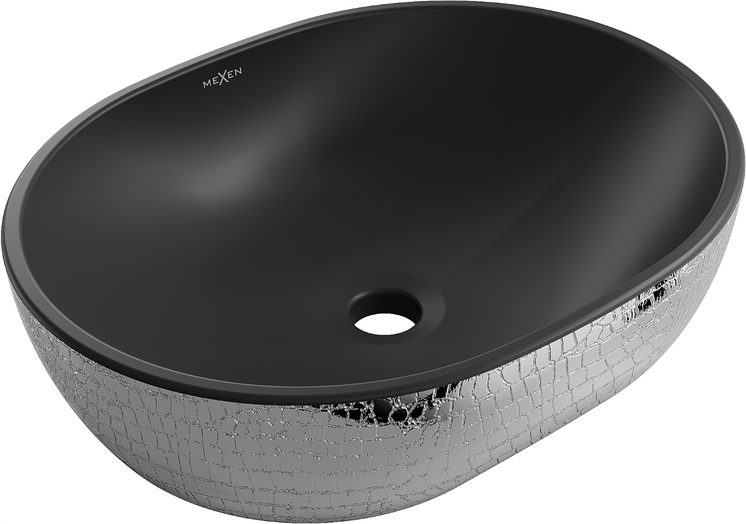 Das Aufsatzwaschbecken Viki ist die perfekte Kombination aus Eleganz und Funktionalität. Es bietet ein modernes Design in schwarzer Mattfarbe mit einem silbernen Schuppenmuster. Hergestellt aus langlebiger Sanitärkeramik bietet es Beständigkeit gegen Beschädigungen. Seine ovale Form und die Abmessungen 48,5 x 35 x 14 cm machen es zur idealen Ergänzung für jedes Badezimmer. Dank der glänzenden Oberfläche sieht es nicht nur schön aus, sondern ist auch leicht zu reinigen. Die fehlenden Löcher für Armaturen und Überlauf verleihen ihm einen minimalistischen Charakter.