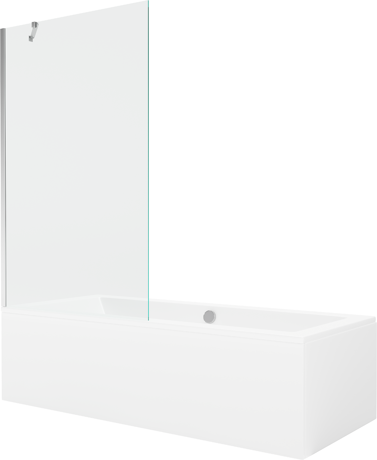 Mexen Cube Rechteckige Badewanne 170 x 80 cm mit Verkleidung und 1-flügeliger Duschwand 100 cm, transparent, Chrom