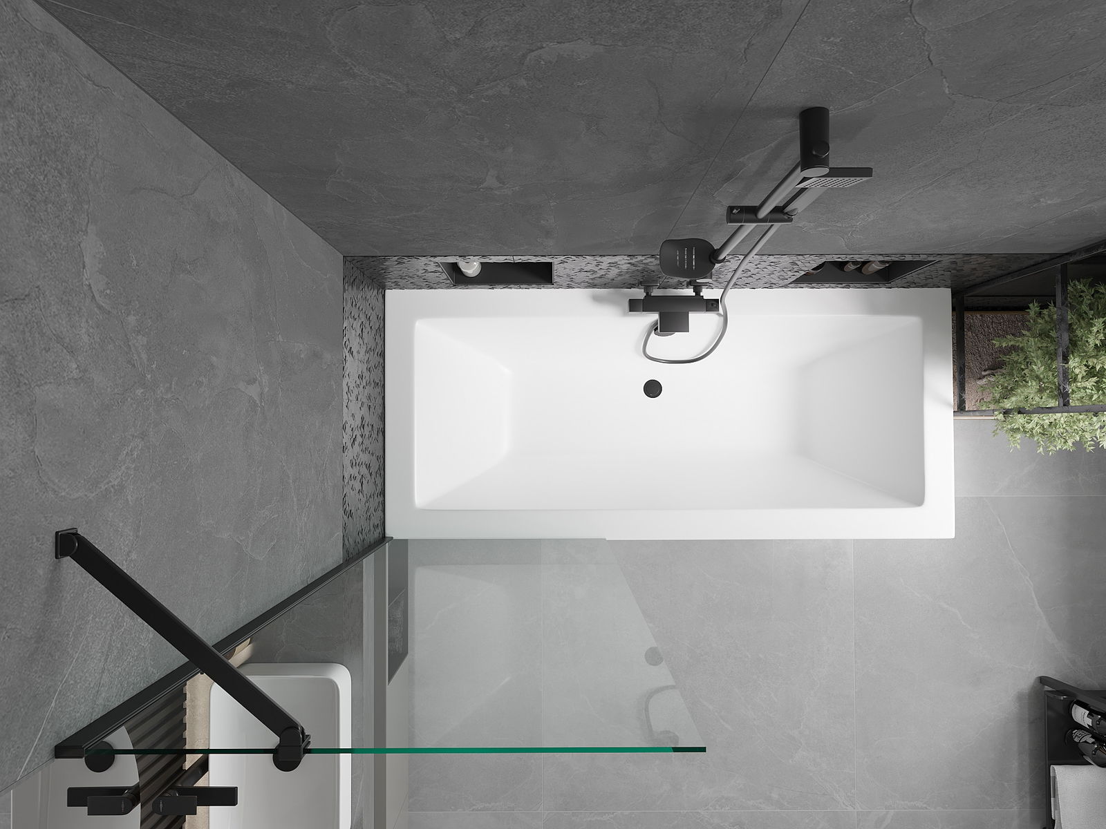 Mexen Cube Rechteckige Badewanne 170 x 80 cm mit Verkleidung und 1-flügeliger Abtrennung 70 cm, transparent, schwarz