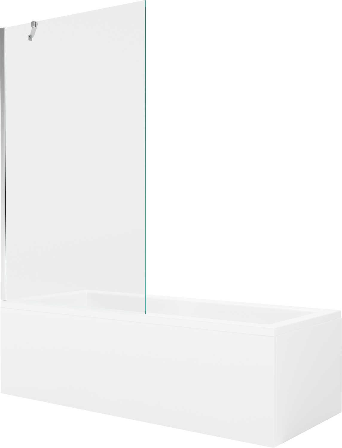 Mexen Cubik Rechteckige Badewanne 150 x 70 cm mit Verkleidung und einflügeliger Abtrennung 100 cm, transparent, Chrom