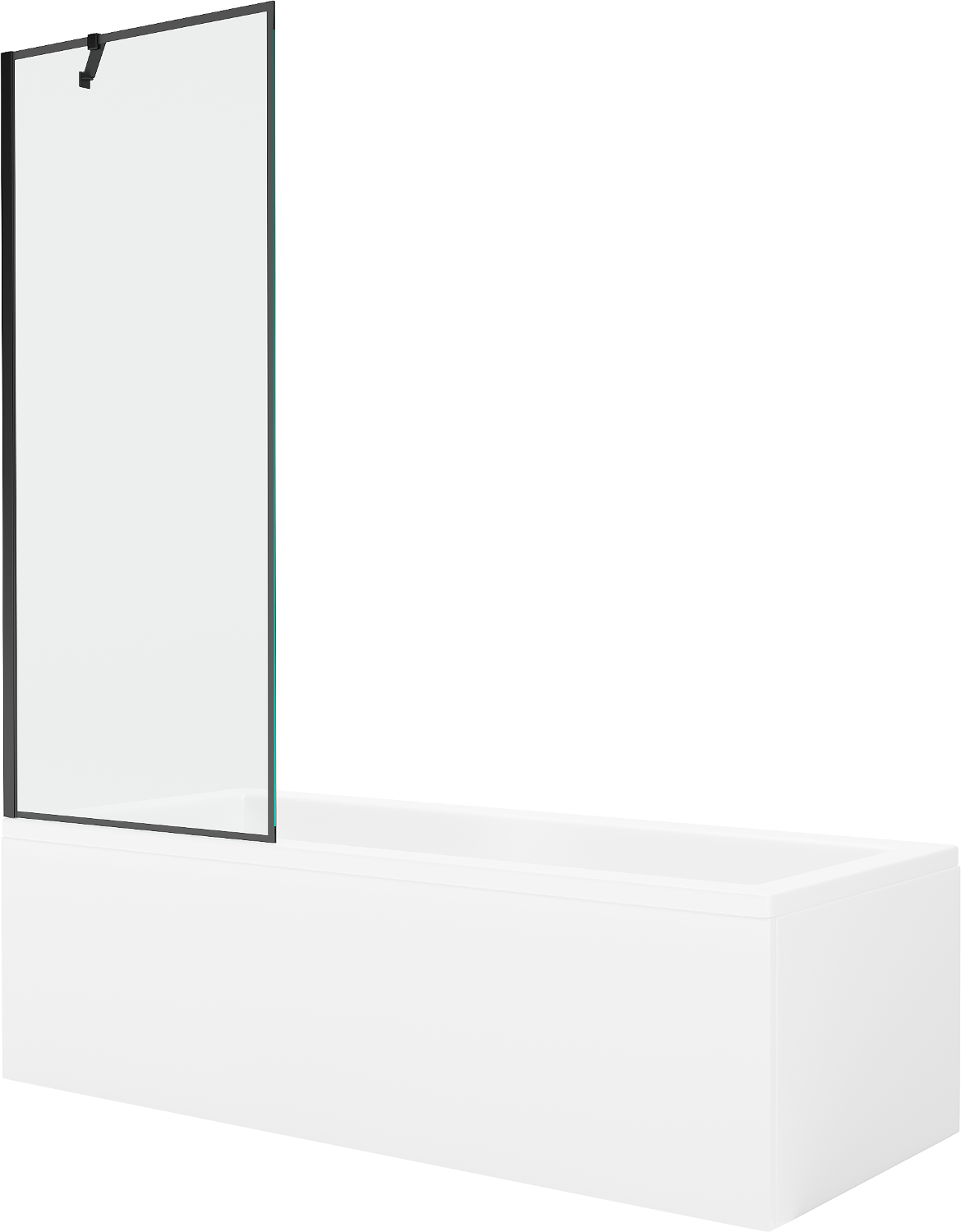 Mexen Cubik Rechteckige Badewanne 150 x 70 cm mit Verkleidung und einflügeliger 70 cm Duschabtrennung, schwarzes Muster