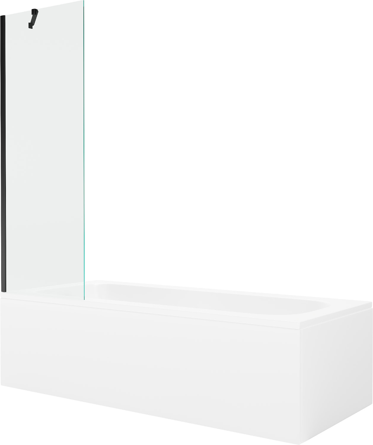 Mexen Vega Rechteckige Badewanne 180 x 80 cm mit Verkleidung und 1-flügeliger 60 cm Duschwand, transparent, schwarz