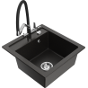 Mexen Vito Granitspüle 1-beckig mit Küchenarmatur Duo, schwarz gesprenkelt - 6503-76-671701-07