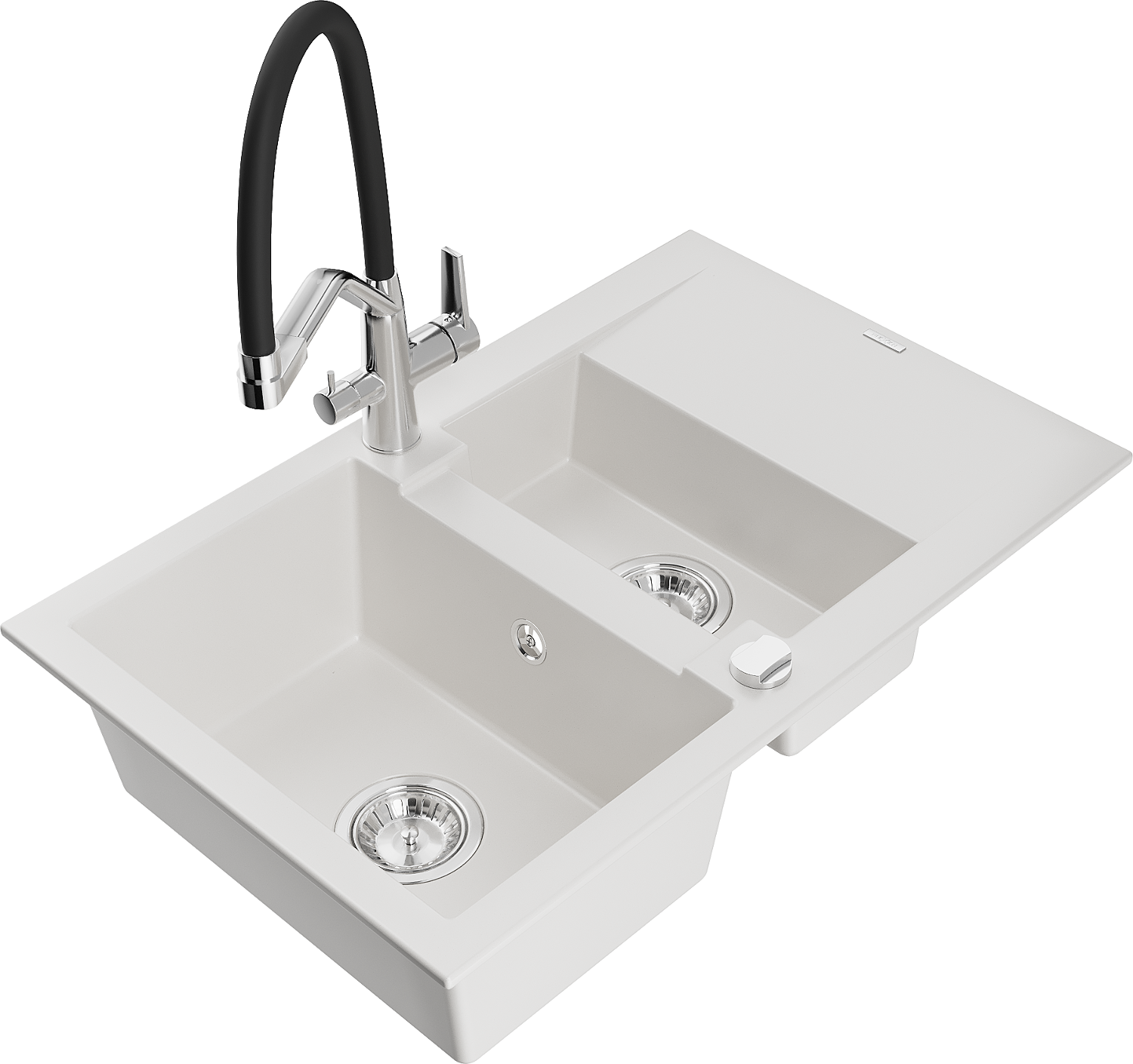 Mexen Gaspar Granitspüle 1,5-Kammern mit Abtropffläche und Küchenarmatur Duo, weiß - 6507-20-671701-07