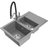 Die Spüle besteht aus hochwertigem Granit. Es ist eine elegante und vor allem praktische Ergänzung zu jeder Küche, unabhängig von ihrem Stil. Hohe Qualität und Granitdauer sorgen für eine langjährige Nutzung.