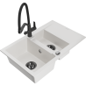 Die Spüle besteht aus hochwertigem Granit. Es ist eine elegante und vor allem praktische Ergänzung zu jeder Küche, unabhängig von ihrem Stil. Hohe Qualität und Granitdauer sorgen für eine langjährige Nutzung.