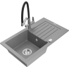 Die Spüle besteht aus hochwertigem Granit. Es ist eine elegante und vor allem praktische Ergänzung zu jeder Küche, unabhängig von ihrem Stil. Hohe Qualität und Granitdauer sorgen für eine langjährige Nutzung.