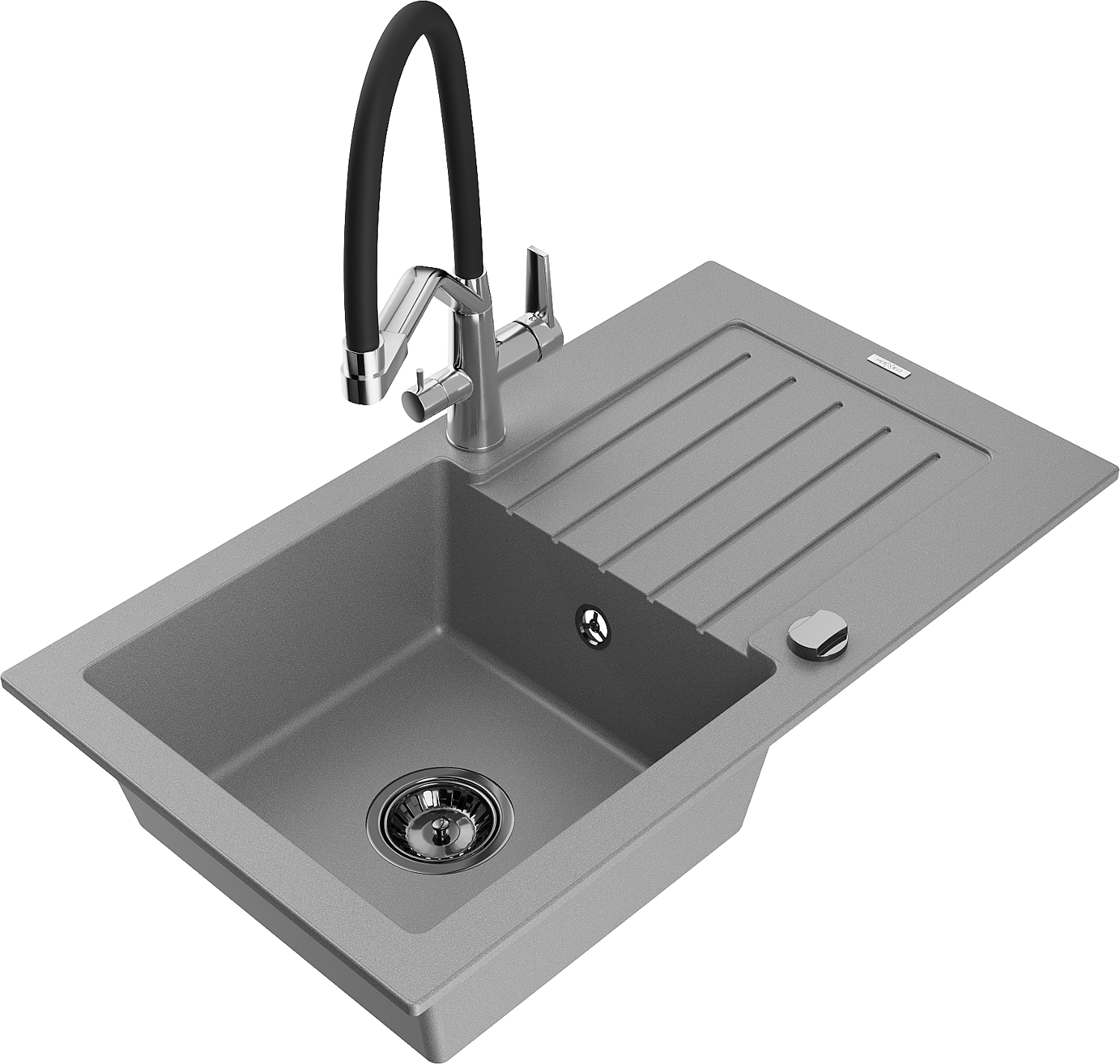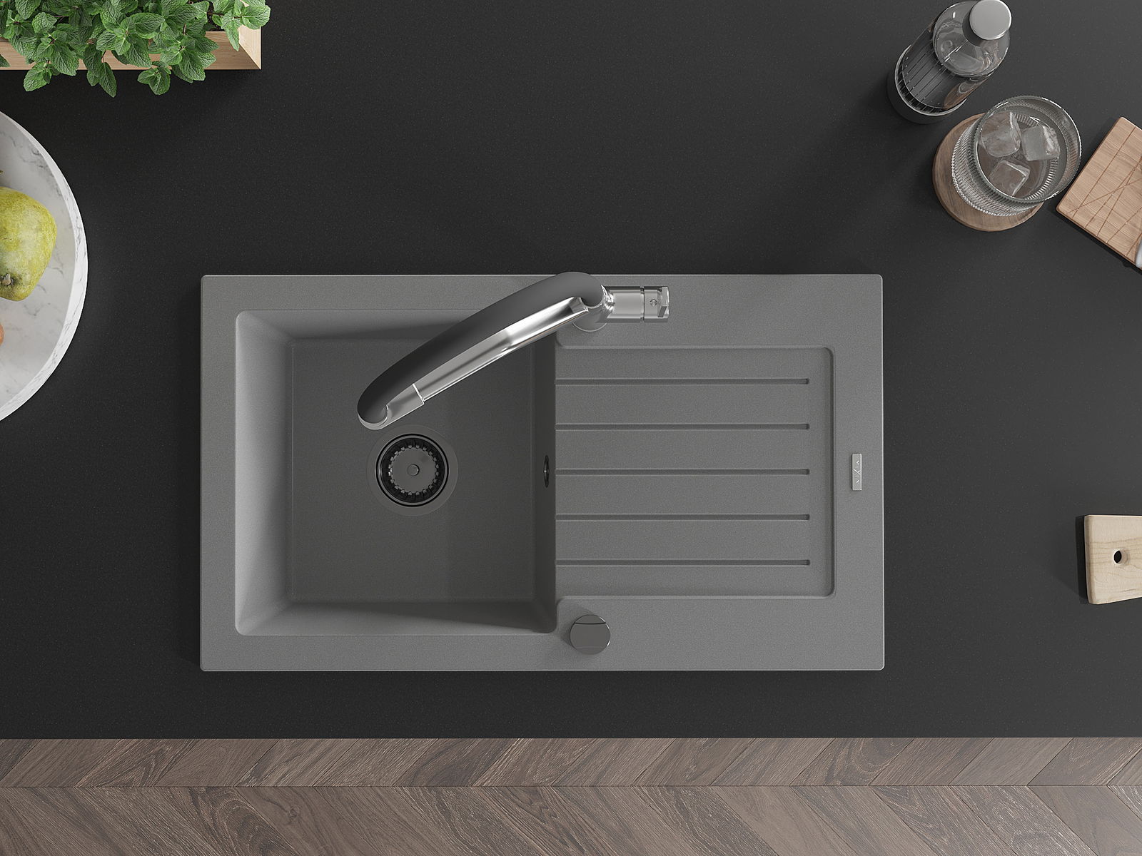 Mexen Pablo Granitspüle 1-beckig mit Abtropffläche und Küchenarmatur Duo, grau - 6510-71-671701-07-B