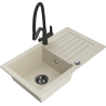 Die Spüle besteht aus hochwertigem Granit. Es ist eine elegante und vor allem praktische Ergänzung zu jeder Küche, unabhängig von ihrem Stil. Hohe Qualität und Granitdauer sorgen für eine langjährige Nutzung.