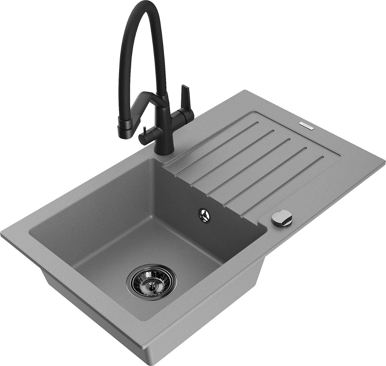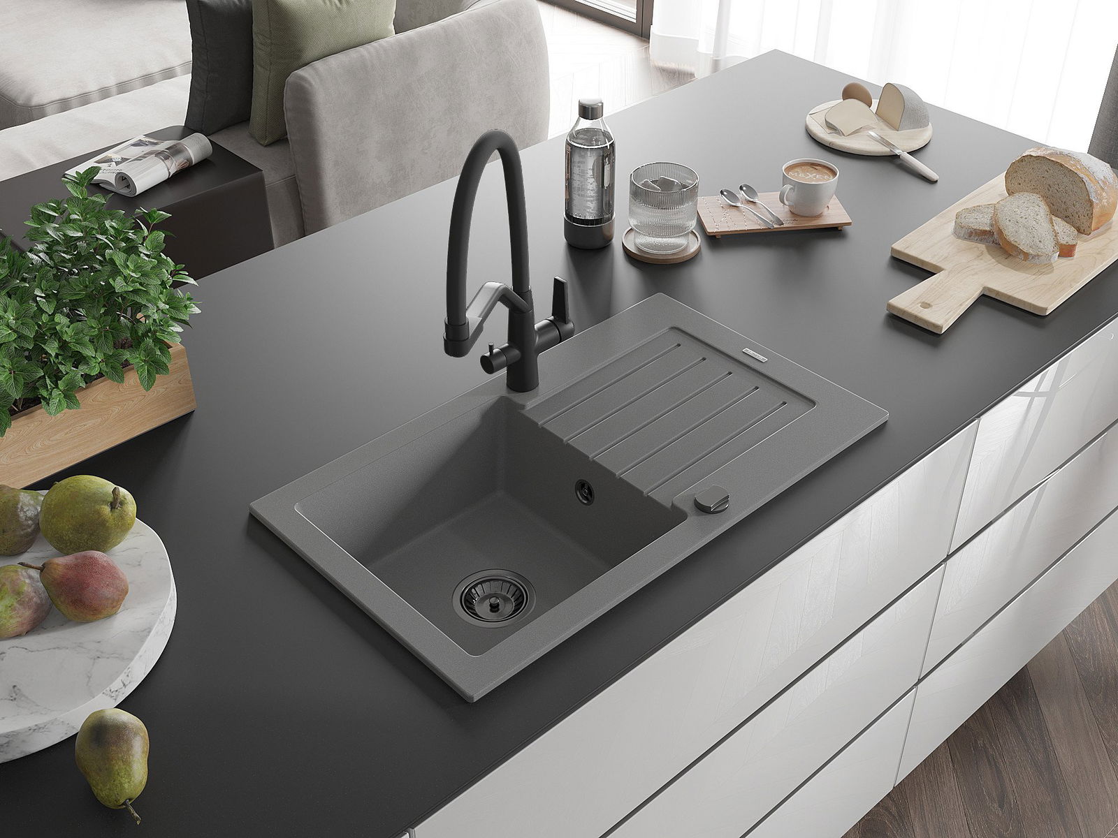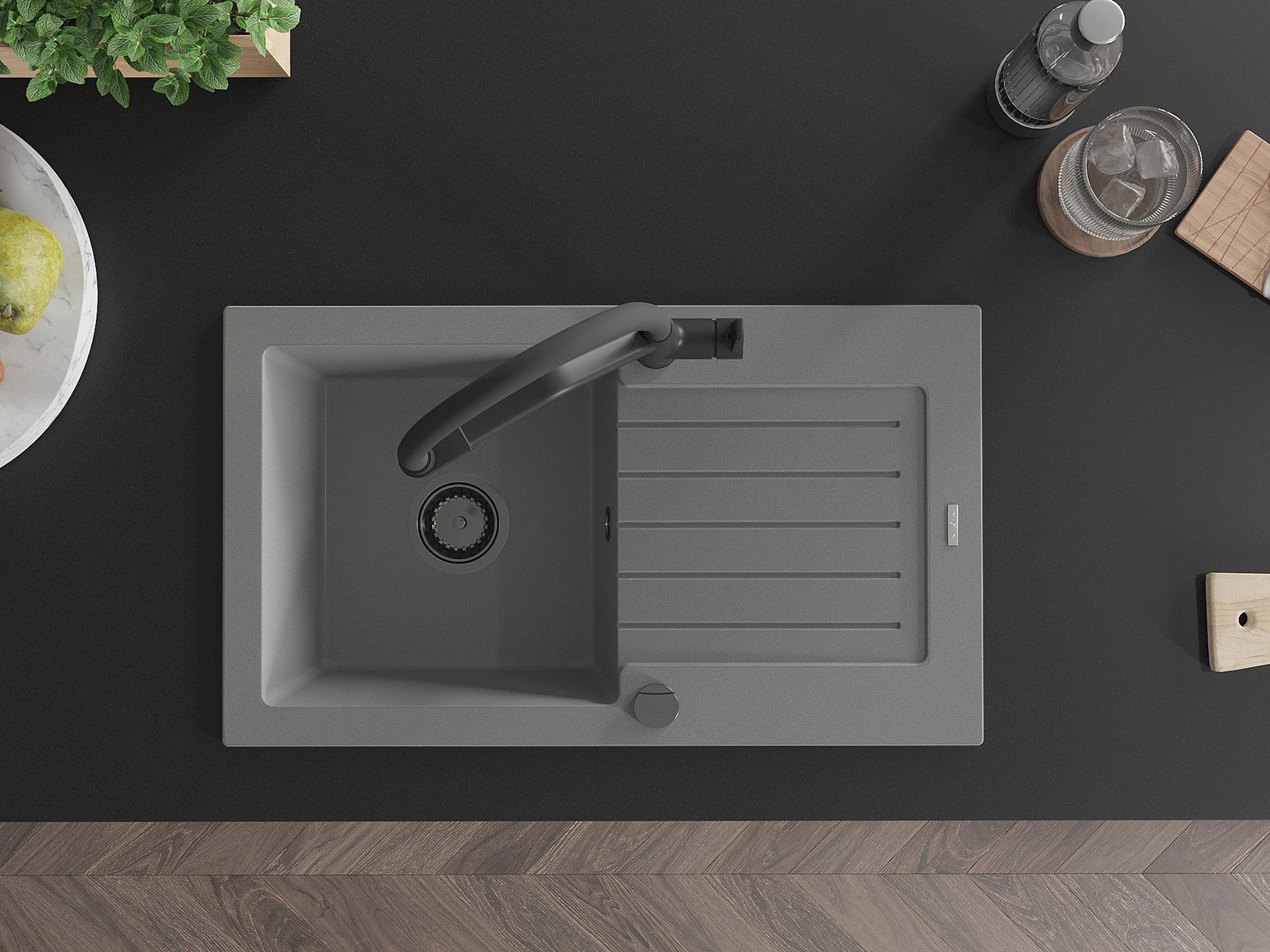 Mexen Pablo Granitspüle 1-Becken mit Abtropffläche und Duo Küchenarmatur, Grau - 6510-71-671701-70-B