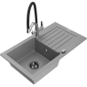 Die Spüle besteht aus hochwertigem Granit. Es ist eine elegante und vor allem praktische Ergänzung zu jeder Küche, unabhängig von ihrem Stil. Hohe Qualität und Granitdauer sorgen für eine langjährige Nutzung.