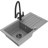 Die Spüle besteht aus hochwertigem Granit. Es ist eine elegante und vor allem praktische Ergänzung zu jeder Küche, unabhängig von ihrem Stil. Hohe Qualität und Granitdauer sorgen für eine langjährige Nutzung.