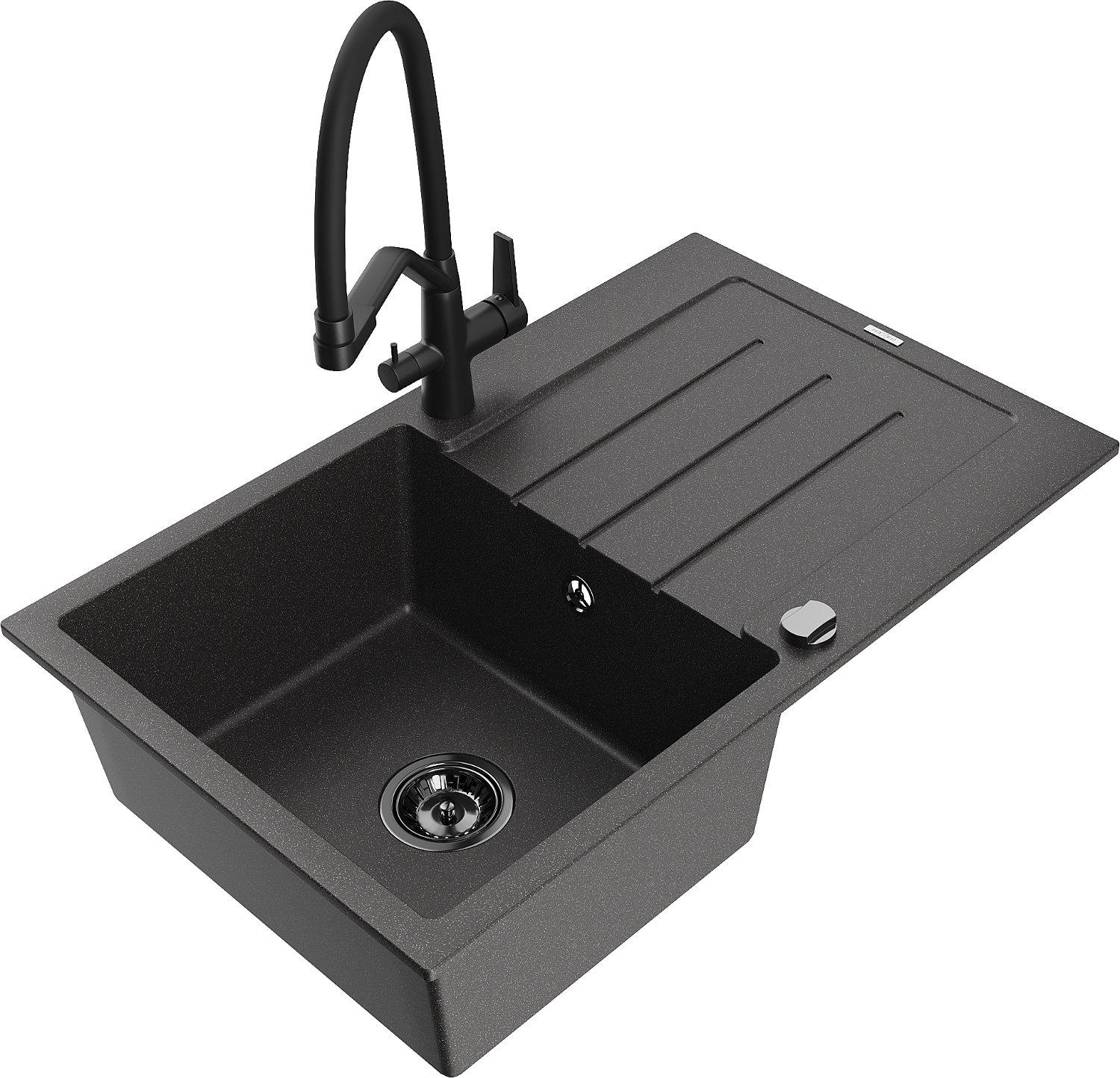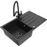 Mexen Bruno Granitspüle 1-beckig mit Abtropffläche und Küchenarmatur Duo, schwarz gesprenkelt - 6513-76-671701-70-B