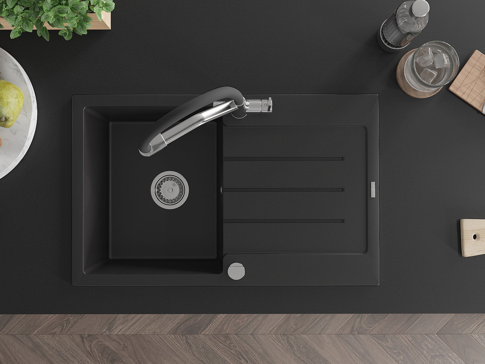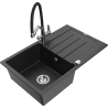 Mexen Bruno Granit-Spüle, 1-beckig mit Abtropffläche und Küchenarmatur Duo, schwarz - 6513-77-671701-07