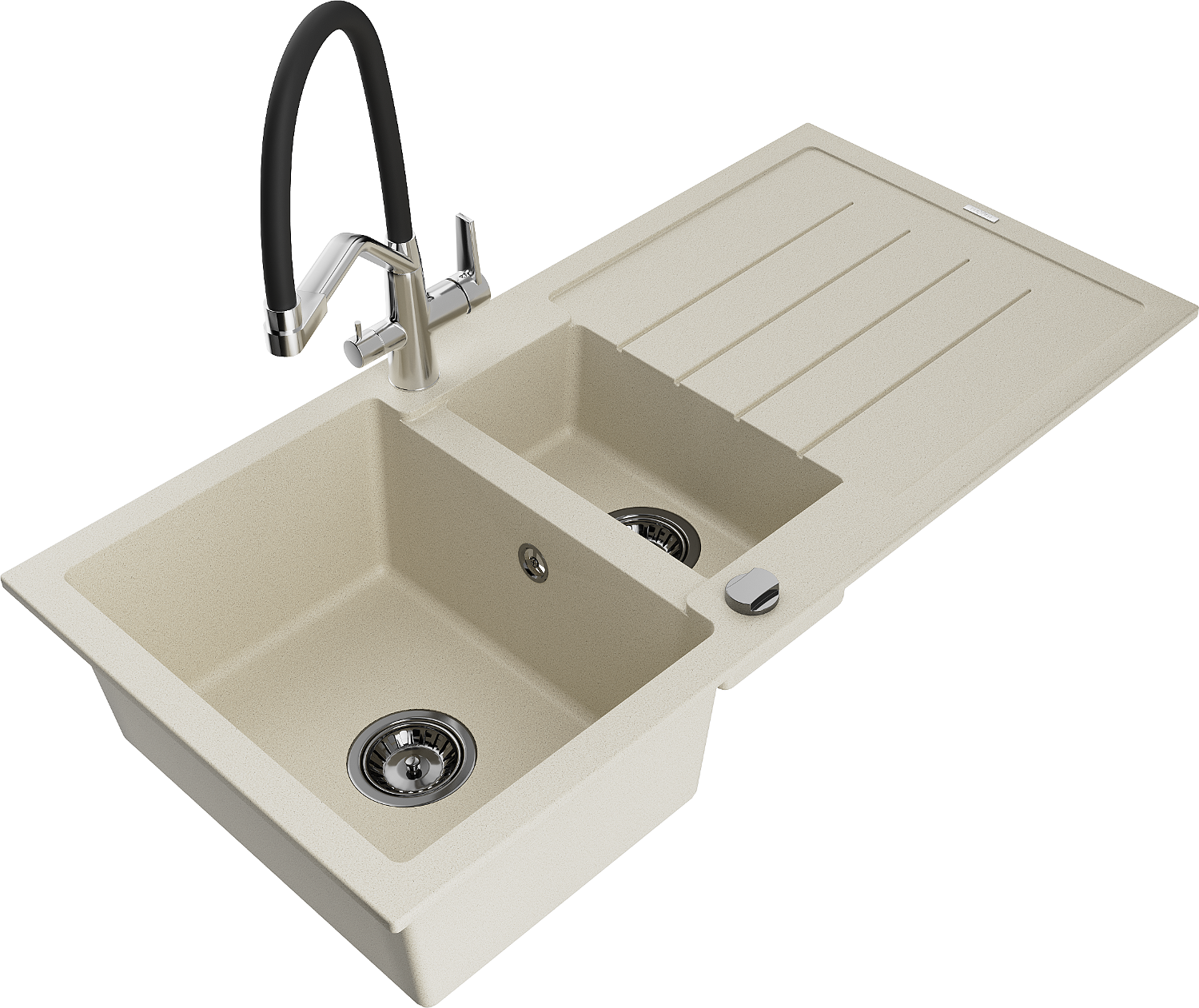 Mexen Andres Granitspüle 1,5 Becken mit Abtropffläche und Küchenarmatur Duo, beige - 6515-69-671701-07-B