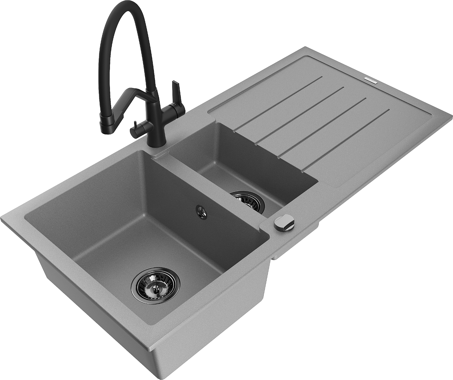Mexen Andres Granitspüle, 1,5-Kammer mit Abtropffläche und Küchenarmatur Duo, grau - 6515-71-671701-70-B