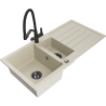 Die Spüle besteht aus hochwertigem Granit. Es ist eine elegante und vor allem praktische Ergänzung zu jeder Küche, unabhängig von ihrem Stil. Hohe Qualität und Granitdauer sorgen für eine langjährige Nutzung.