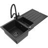 Mexen Andres Granitspüle 1,5-Becken mit Abtropffläche und Küchenarmatur Duo, schwarz gesprenkelt - 6515-76-671701-70-B