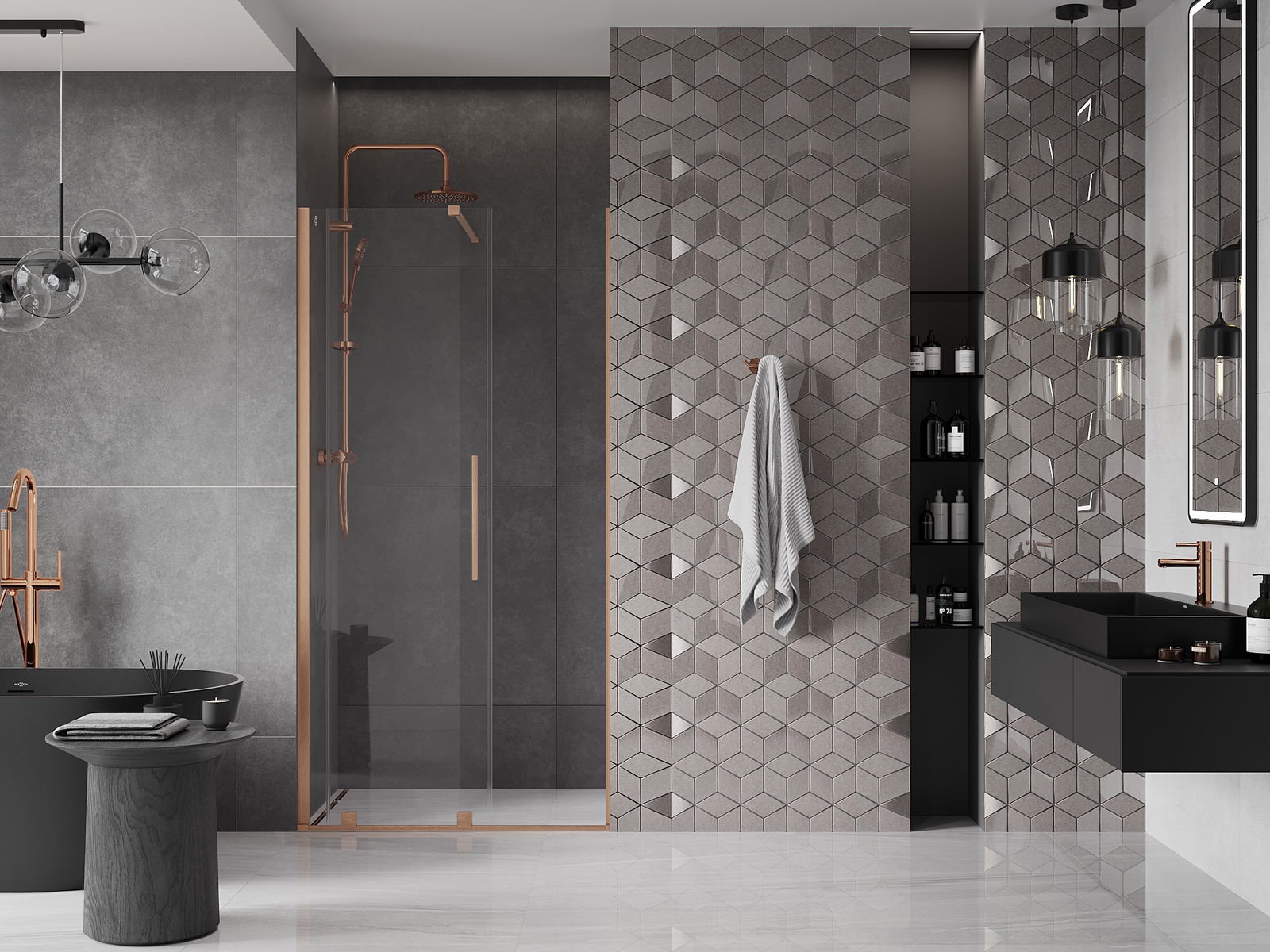 Der praktische und bequeme Griff ist aus rostfreiem Stahl gefertigt. Die modische Form, kombiniert mit einer auf die Farbe der Profile abgestimmten Oberfläche, verleiht dem Ganzen ein modernes und stilvolles Aussehen, das die Ästhetik eines jeden Badezimmers aufwertet.
