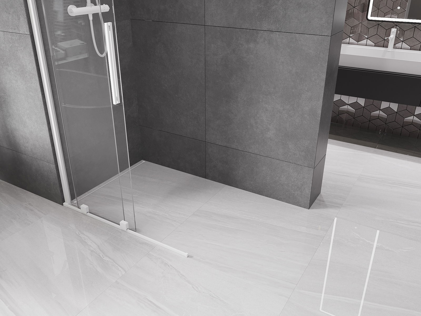 Mexen Velar Schiebetür-Duschwand Walk-in 100 x 200 cm, transparent 8 mm, weiß - 871-100-000-03-20