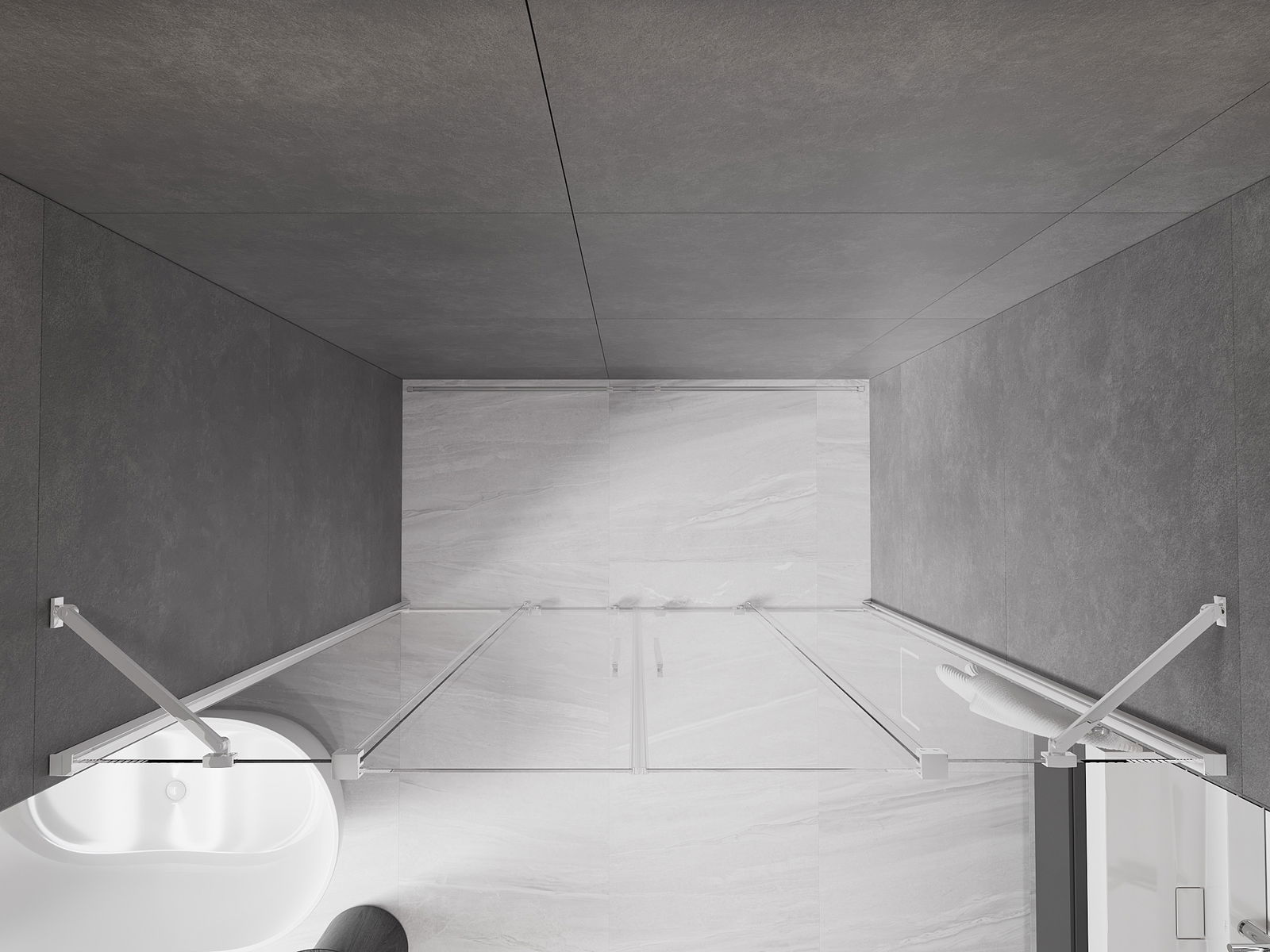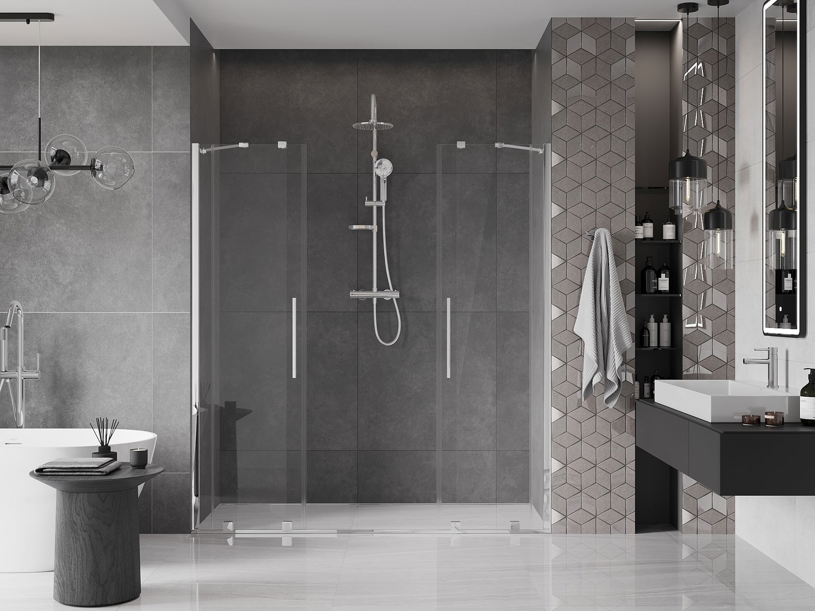 Dank der Verwendung eines universellen Montagesystems können die Duschtüren je nach Ihren Bedürfnissen rechts oder links montiert werden. Dank dessen können Sie problemlos eine Dusche entwerfen, die auf den Raum des Badezimmers zugeschnitten ist.