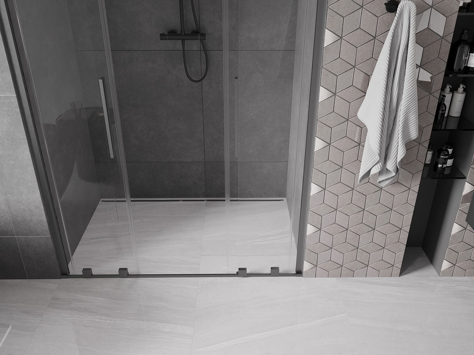 Mexen Velar Duo Schiebetür für Dusche 140 cm, transparent, gebürstetes Gun Gray - 871-140-000-02-66