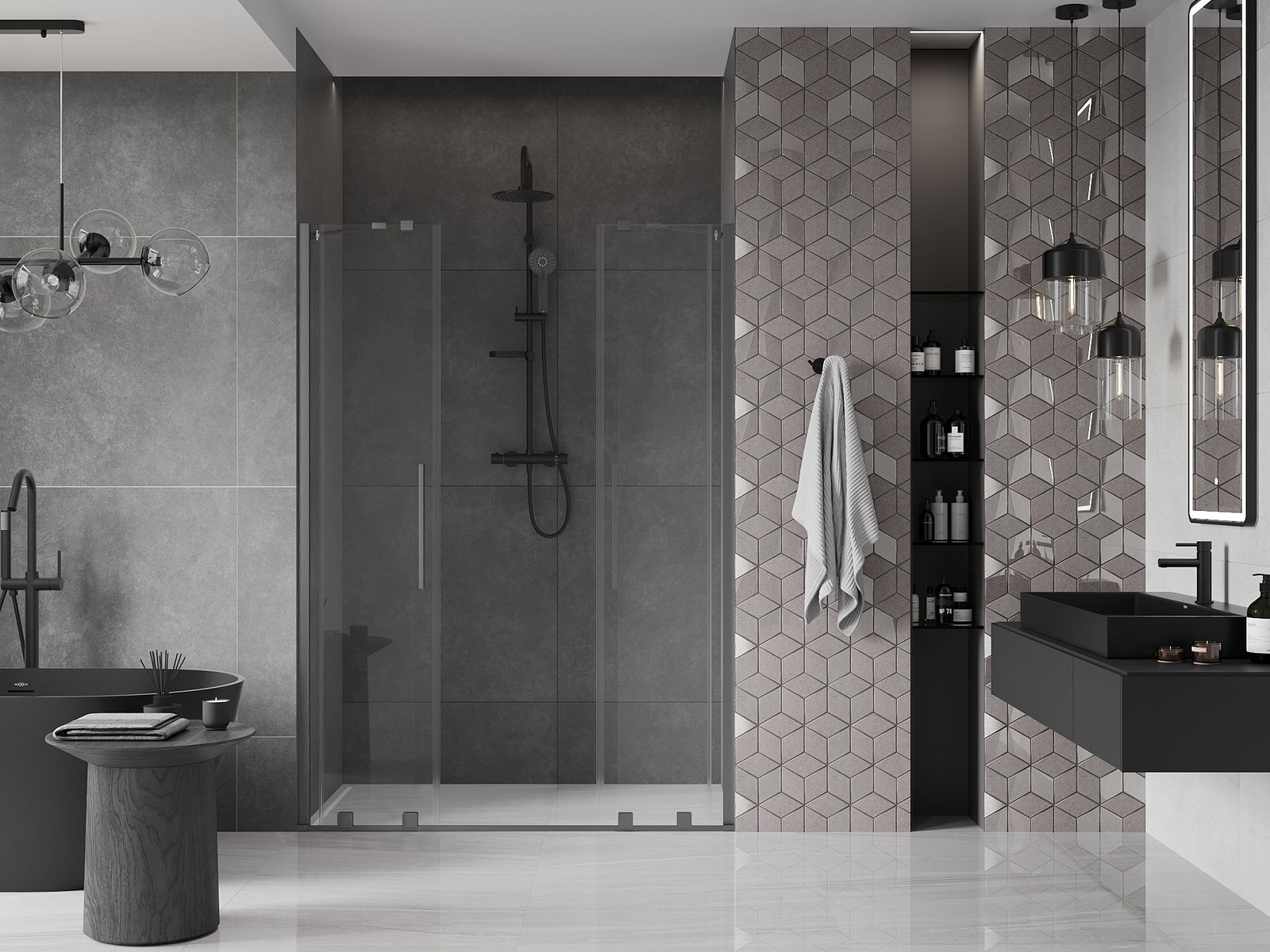 Dank der Verwendung eines universellen Montagesystems können die Duschtüren je nach Ihren Bedürfnissen rechts oder links montiert werden. Dank dessen können Sie problemlos eine Dusche entwerfen, die auf den Raum des Badezimmers zugeschnitten ist.