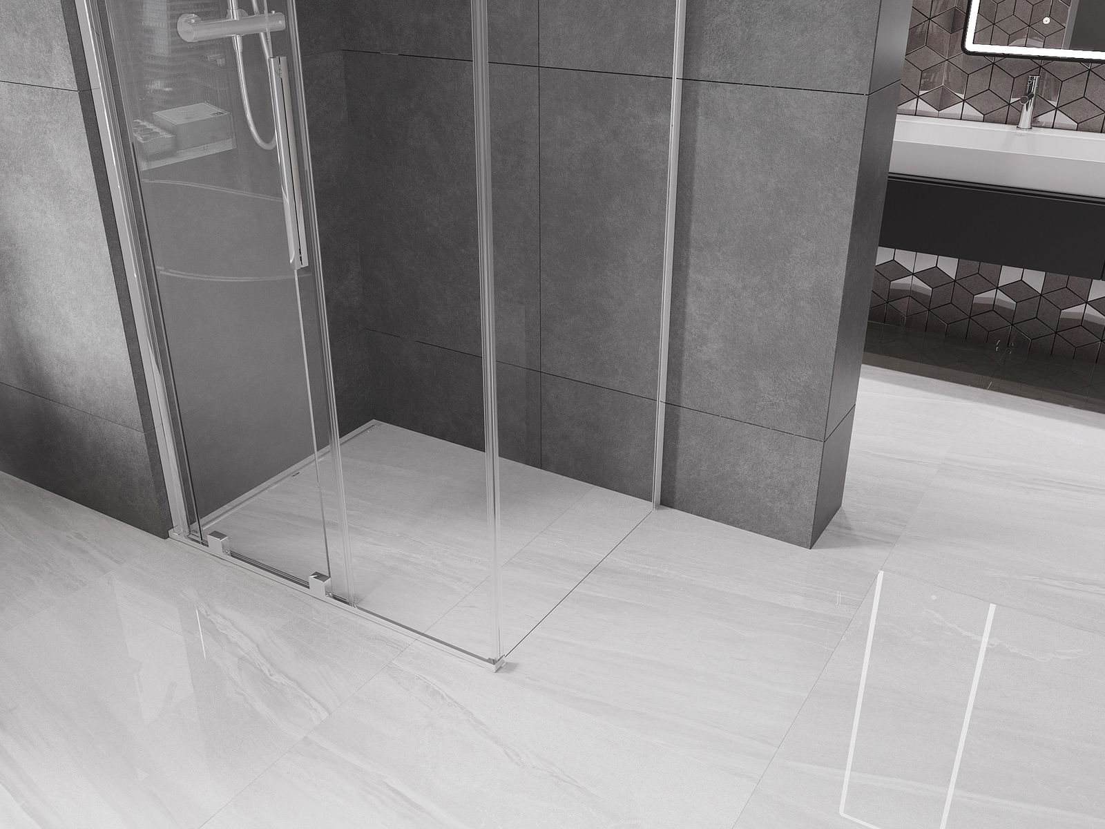 Dank der Verwendung eines universellen Montagesystems können die Duschtüren je nach Ihren Bedürfnissen rechts oder links montiert werden. Dank dessen können Sie problemlos eine Dusche entwerfen, die auf den Raum des Badezimmers zugeschnitten ist.