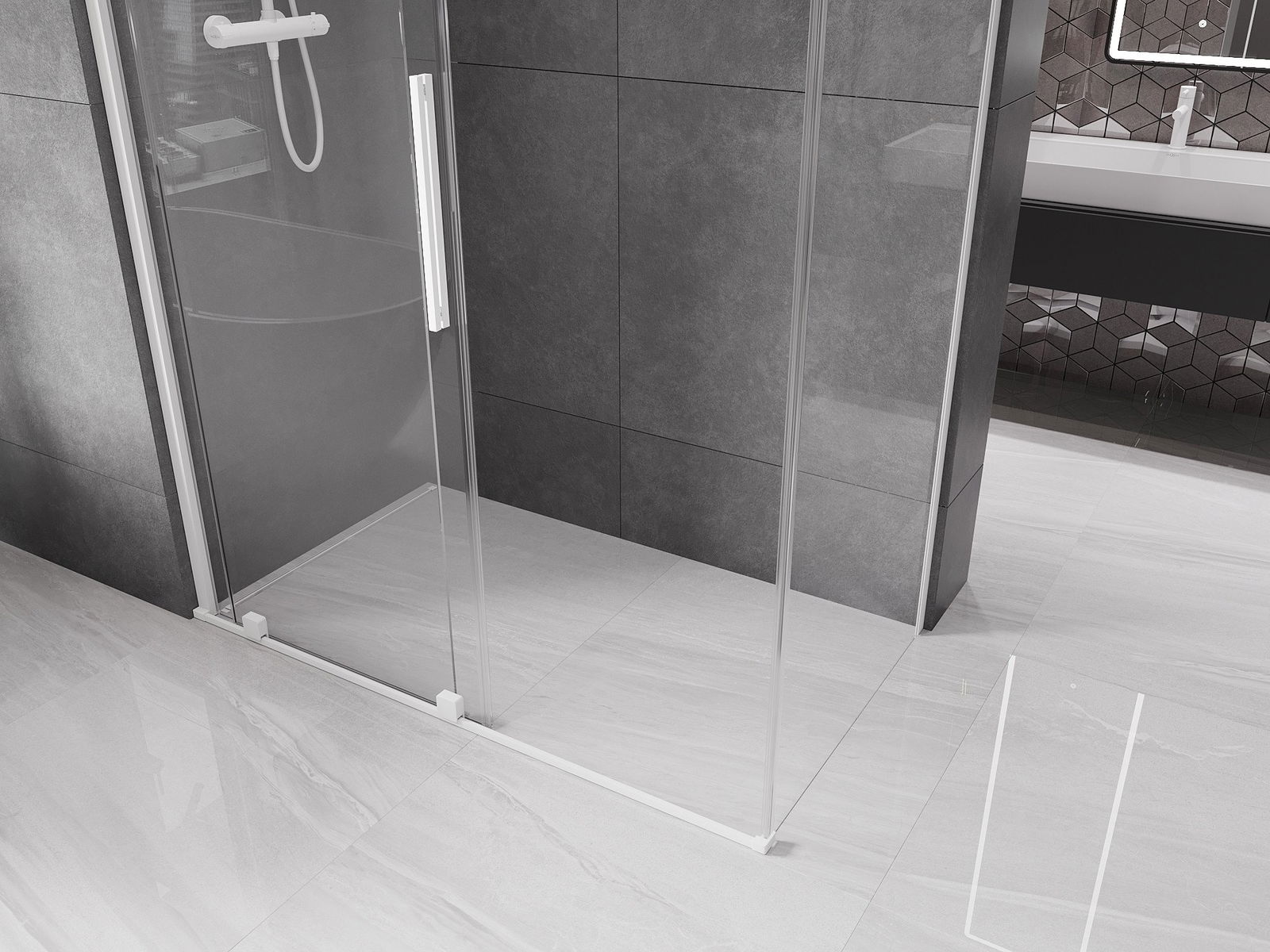 Die Versiegelungsschwelle bietet einen effektiven Schutz vor Wasserabfluss außerhalb der Dusche und schützt das Badezimmer vor Überschwemmungen. Dank Aluminium ist die Versiegelungsschwelle korrosionsbeständige und mechanische Schäden.